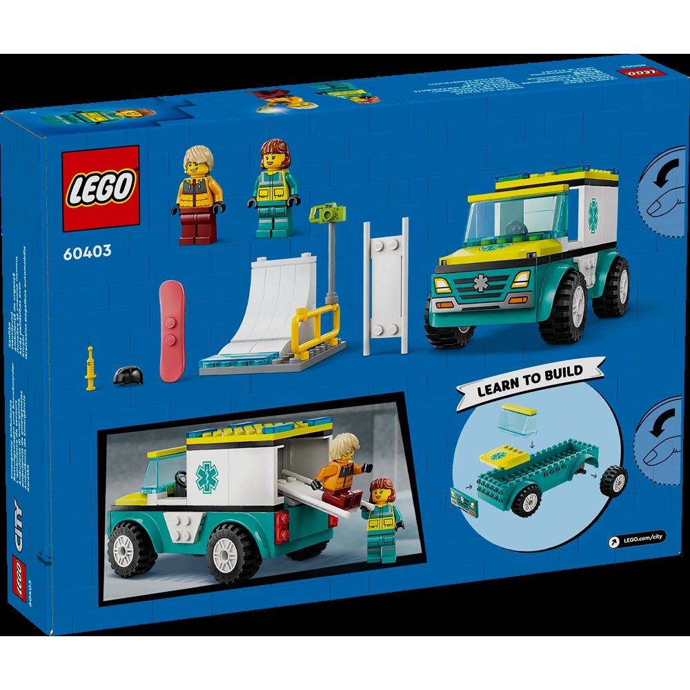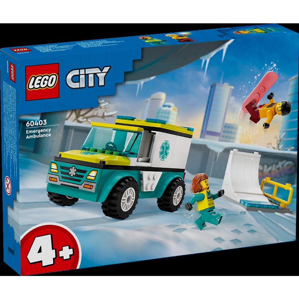 Forside »Leketøy » LEGO » LEGO 4+ Ambulanse og snowboarder - 60403 - LEGO City LEGO City Knallpris:309,00NOK Få på lager Trustpilot Antall Legg i kurv Se mer fra: LEGO City Artikkelnummer:LEG60403 Har du spørsmål om produktet? LEGO City Ambulanse og snowboarder 60403Fans av utrykningskjøretøy vil elske dette lekesettet med en ambulanse, en skatepark-scene samt minifigurer av en snowboarder og en paramedisiner. Tilbake til LEGO 4+