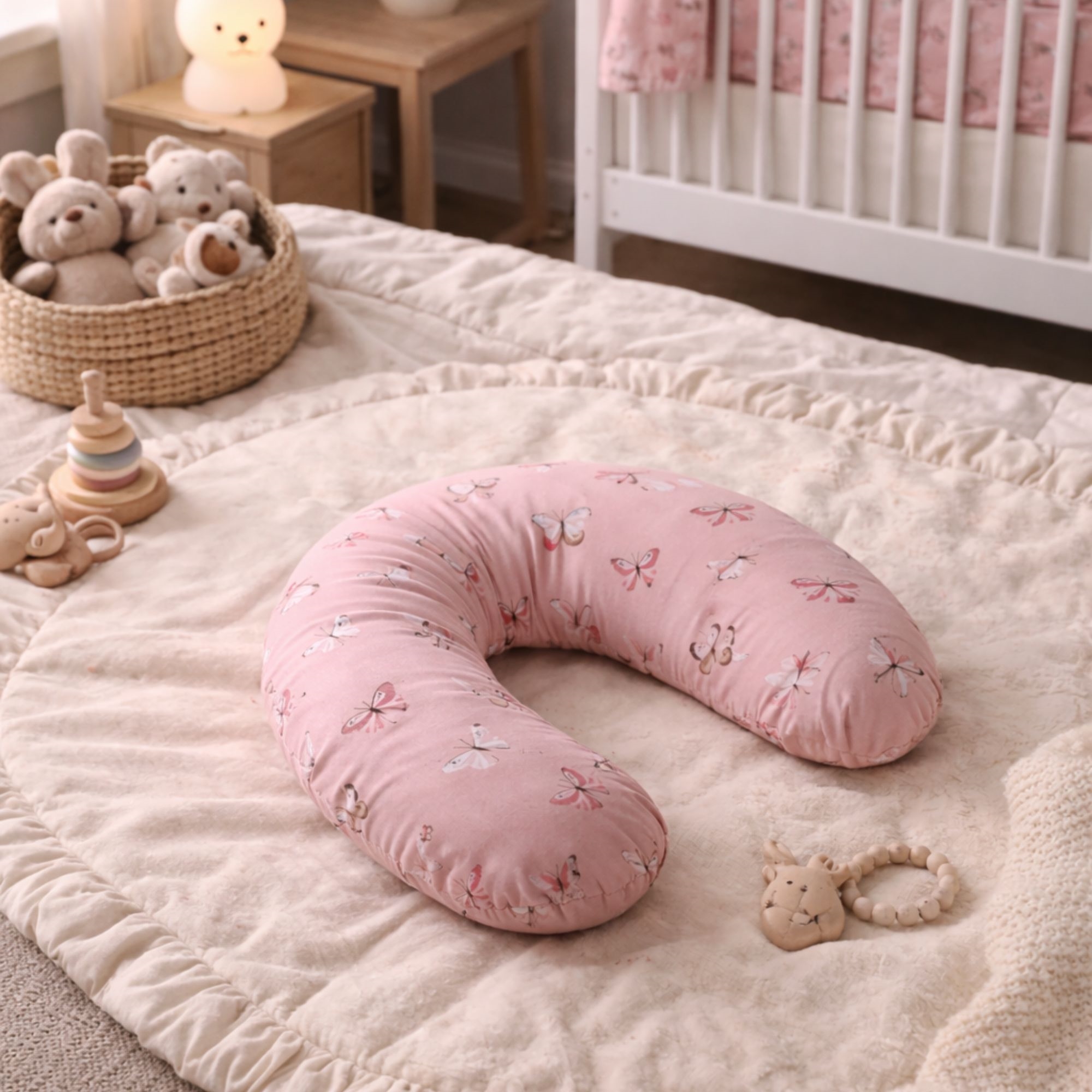 Det fine lyserosa designet med sommerfugler gir et koselig og barnevennlig uttrykk, som passer perfekt inn på barnerommet.