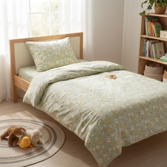 Sengesettet er produsert i 100% myk bomull, som er pustende og skånsom mot babyens sarte hud. Bomullens naturlige egenskaper hjelper med å regulere temperaturen gjennom natten, slik at din baby får en trygg, komfortabel og rolig søvn – hele året rundt.