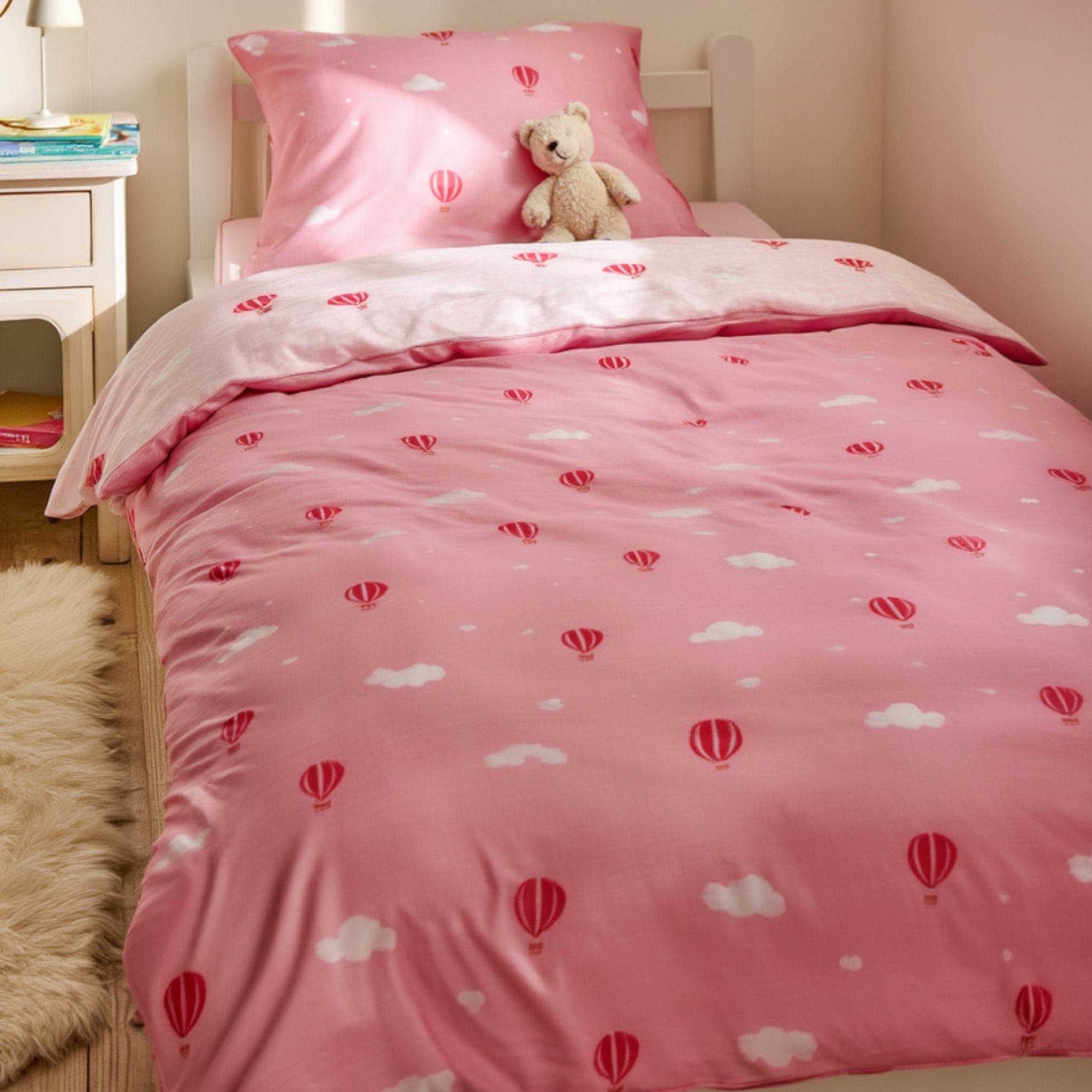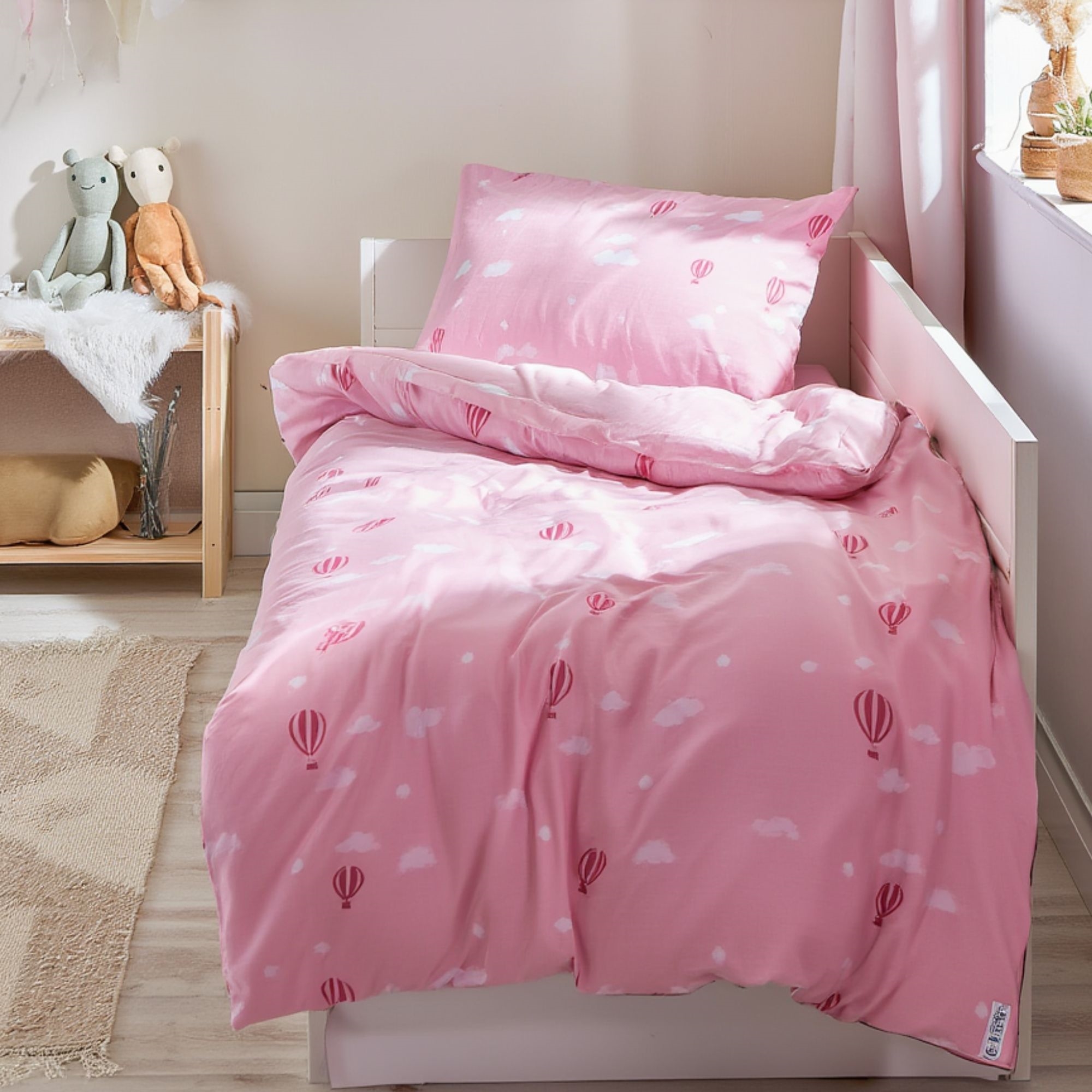 Forside »Sengetøy » Sengetøy til barn » Sengetøy til baby 70x100 cm Baby sengetøy 70x100 cm - Lyserødt sengesett med luftballonger - 100% mykt bomulls sengetøy Spar40% By Mats 249,00149,00NOKSpar 100,- På lager Trustpilot Antall Legg i kurv Se mer fra: By Mats Artikkelnummer:12151-7 Les vår sengetøyguide Se vårt store utvalg av laken Se vårt store utvalg av dyner 70x100 Har du spørsmål om produktet? Deilig mykt Pustende og behageligFri for kjemikalier - OEKO-TEX® sertifisert Dynetrekk: 70x100 cm - baby sengesett Putetrekk: 40x45 cm Materiale: 100% myk bomull Farge: Lyserød Motiv: Luftballonger Lukking: Dyne med knapper, putetrekk med overlapp Vask: 60° Tørketrommel: Ja Tåler stryking: Ja Sertifisering: STANDARD 100 by OEKO-TEX® (2016OK0709). Din garanti for at produktet er fritt for helseskadelig kjemi. Mykt baby sengetøy i 100% bomull, med luftballonger. Produsert med lette og pustende bomullsfibre gir sengesettet en følelse av mykhet som gjør at dynen faller naturlig rundt barnet ditt. Balansen i naturlig komfort fra det myke materialet og det koselige designet gjør dette settet til en sikker favoritt hos barnet ditt. Herlig sengesett med superfint trykk av luftballonger. Dette flotte all-over-trykket i dempede farger skaper en avslappende stemning og hyggelige omgivelser for søvn. Baby sengetøyet passer til en vanlig babydyne størrelse og kan brukes i sengen, i babynestet, i barnevognen eller hvor enn dynen tas med. Babydynen er ofte fast rundt barnet mange timer i døgnet, da den skaper stor ro, gjenkjennelighet, trygghet og varme for babyen - ikke bare den første tiden, men ofte opp til 2-3 års alder. Det brukes derfor mye og vaskes ofte, og derfor ønsker de fleste også mykt sengetøy i bomull av høy kvalitet. Dette myke baby sengetøyet er laget av 100% myk bomull av høy kvalitet, som inneholder gode naturlige egenskaper som alle tilfører noe godt til sengesettet. Blant annet er bomull pustende, gir høy absorbering, deilig mykt og behagelig rundt barnets kropp og mot huden. Dynetrekket er produsert med smarte trykknapper, mens putetrekket har en praktisk overlapp. I tillegg er det enkelt å vaske, noe som også er en liten gave når det gjelder babyer og småbarn, da tid noen ganger kan være en mangelvare med en liten baby. Se også vårt store utvalg av flott og stilfullt babytilbehør her Vi anbefaler å ha mer enn ett sett sengetøy til baby. Med en liten baby skjer det ofte uhell av flere slag. Det er derfor fint å ha et ekstra sett liggende, klart til å skiftes når uhellet skjer. De fleste mødre opplever at 3-4 sett baby sengetøy er greit å ha i skapet. Det samme gjelder baby laken, både til barnevogn og babyseng. I tillegg kan det være veldig greit å ha en ekstra babydyne liggende, da disse ofte tar litt lengre tid å tørke. På denne måten kan du være sikker på at barnet ditt ikke mangler sengetøy når det skal vaskes eller klokken er sent om natten. Du finner vårt sortiment av kvalitetslaken her til barn her Tilbake til Sengetøy til baby 70x100 cm Du kan også være interessert i: Babydyne 70x100 cm – Moskusdun helårs babydyne – Borg Living dyne100 % moskusdun – Borg Living Bæreevne: Over 12 Babydyne Veiledende utsalgspris : 1.014,00 Spar : 315,00 1.899,00 NOK699,00 NOK