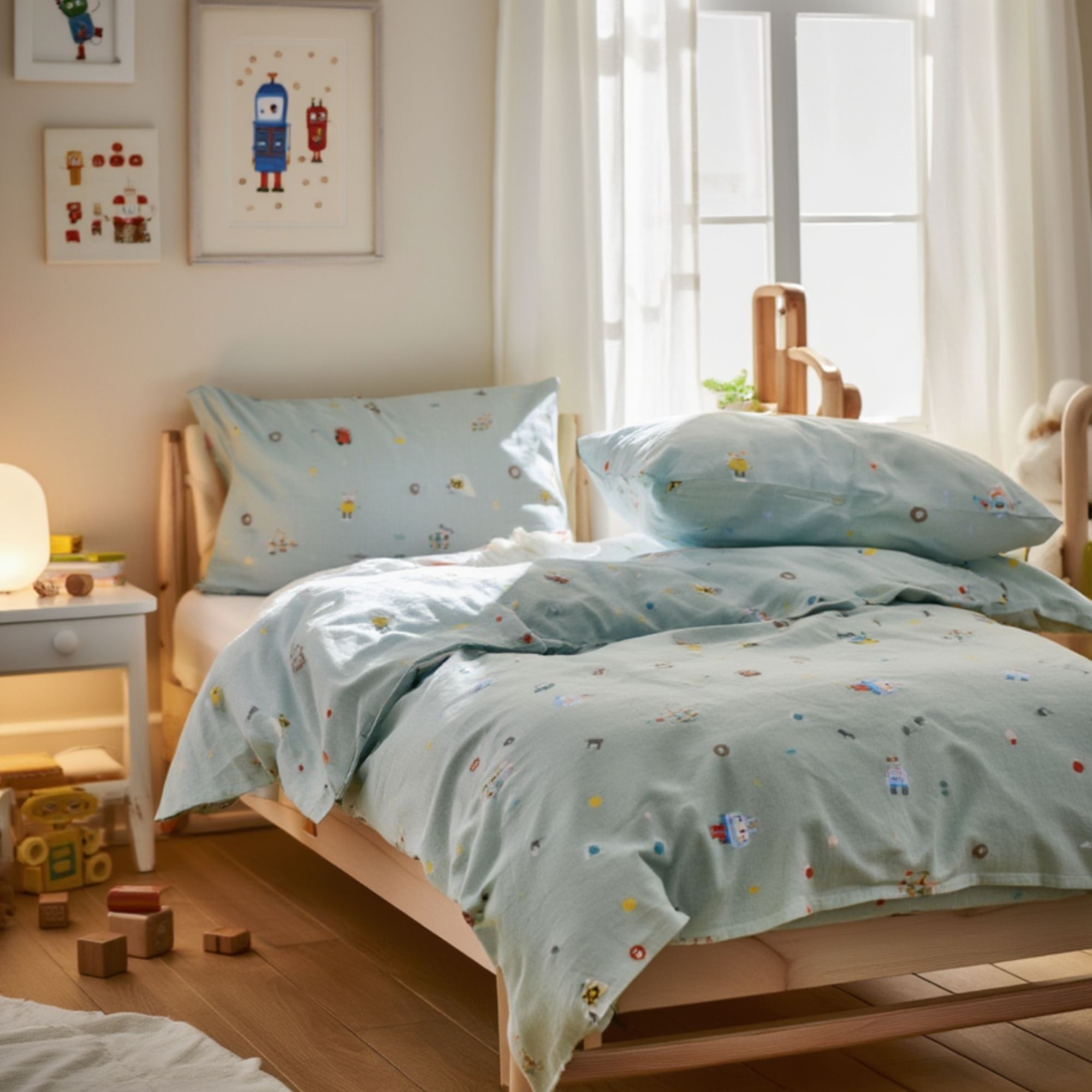 Forside »Sengetøy » Sengetøy til barn » Sengetøy til baby 70x100 cm Baby sengetøy 70x100 cm - Blått sengesett med små roboter - 100% mykt bomulls sengetøy Spar40% By Mats 249,00149,00NOKSpar 100,- På lager Trustpilot Antall Legg i kurv Se mer fra: By Mats Artikkelnummer:12152-7 Les vår sengetøyguide Se vårt store utvalg av laken Se vårt store utvalg av dyner 70x100 Har du spørsmål om produktet? Deilig mykt Pustende og behageligFri for kjemikalier - OEKO-TEX® sertifisert Dynetrekk: 70x100 cm - baby sengesett Putetrekk: 40x45 cm Materiale: 100% myk bomull Farge: Blå Motiv: Små roboter Lukking: Dyne med knapper, putetrekk med overlapp Vask: 60° Tørketrommel: Ja Tåler stryking: Ja Sertifisering: STANDARD 100 by OEKO-TEX® (2016OK0709). Din garanti for at produktet er fritt for helseskadelig kjemi. Mykt baby sengetøy i 100% bomull, med små roboter. Produsert med lette og pustende bomullsfibre gir sengesettet en følelse av mykhet som gjør at dynen vil falle naturlig rundt barnet ditt. Balansen i naturlig komfort fra det myke materialet og det koselige designet gjør dette settet til en sikker favoritt hos barnet ditt. Herlig sengesett med superfint trykk av roboter. Dette flotte all-over trykket i dempede farger skaper en avslappende stemning og hyggelige omgivelser for søvn. Baby sengetøyet passer til en vanlig babydyne størrelse og kan brukes i sengen, i babynestet, i barnevognen eller hvor enn dynen tas med. Babydynen er ofte tett rundt barnet mange timer i døgnet, da den skaper stor ro, gjenkjennelighet, trygghet og varme for babyen - ikke bare den første tiden, men ofte opp til 2-3 års alder. Den brukes derfor mye og vaskes ofte, og derfor ønsker de fleste også mykt sengetøy i bomull av høy kvalitet. Dette myke baby sengetøyet er laget av 100% myk bomull i høy kvalitet, som inneholder gode naturlige egenskaper som alle tilfører noe godt til sengesettet. Blant annet er bomull pustende, har høy absorbering, deilig myk og behagelig rundt barnets kropp og mot huden. Dynetrekket er produsert med smarte trykknapper, mens putetrekket har en praktisk overlapp. I tillegg er det enkelt å vaske, noe som også er en liten gave når det gjelder babyer og små barn, da tid noen ganger kan være en mangelvare med en liten baby. Se også vårt store utvalg av flott og stilfullt babytilbehør her Vi anbefaler å ha mer enn ett sett sengetøy til baby. Med en liten baby skjer det ofte uhell av flere slag. Det er derfor fint å ha et ekstra sett liggende, klart til å skifte når uhellet skjer. De fleste mødre opplever at 3-4 sett baby sengetøy er greit å ha i skapet. Det samme gjelder baby laken, både til barnevogn og babyseng. I tillegg kan det være veldig fint å ha en ekstra babydyne liggende, da disse ofte tar litt lengre tid å tørke. På denne måten kan du være sikker på at barnet ditt ikke mangler sengetøy når det skal vaskes eller klokken er sent om natten. Du finner vårt sortiment av kvalitets laken her til barn her Tilbake til Sengetøy til baby 70x100 cm Du kan også være interessert i: Babydyne 70x100 cm – Moskusdun helårs babydyne – Borg Living dyne100 % moskusdun – Borg Living Bæreevne: Over 12 Babydyne Veiledende utsalgspris : 1.014,00 Spar : 315,00 1.899,00 NOK699,00 NOK