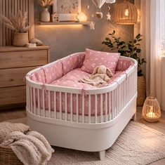 Dette myke baby sengetøyet er laget av 100% myk bomull i høy kvalitet, som inneholder gode naturlige egenskaper, som alle tilfører noe godt til sengesettet. Blant annet er bomull pustende, gir høy absorbering, deilig mykt og behagelig rundt barnets kropp og mot huden. I tillegg er det lett å vaske, noe som også er en liten gave når det gjelder babyer og små barn, da tid noen ganger kan være en mangelvare med en liten baby.