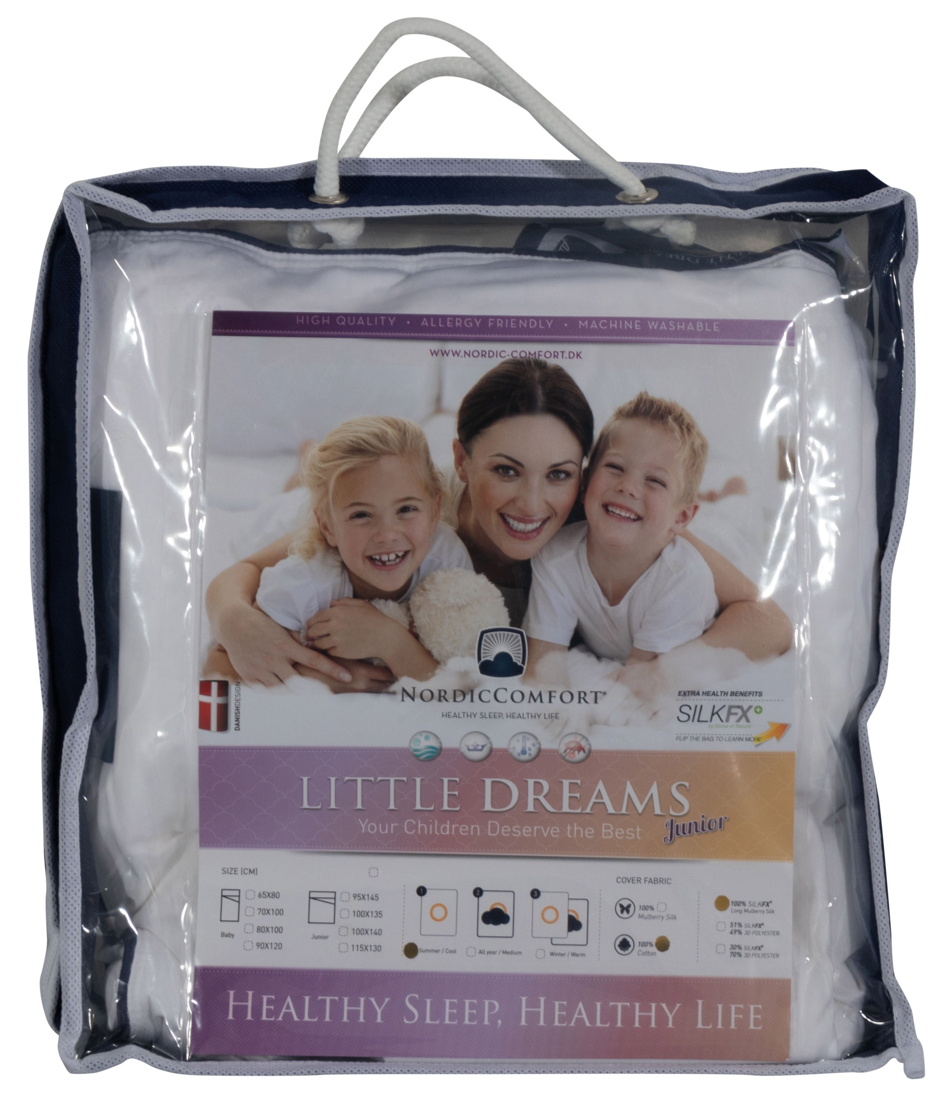 Forside »Innredning » Barnerommet » Babydyne 70x100 cm Baby silkedyne - 70x100 cm - Baby sommerdyne - Nordic Comfort - Temperaturregulerende baby dyne Spar25% Nordic comfort 1.199,00899,00NOKSpar 300,- På lager Trustpilot Antall Legg i kurv Se mer fra: Nordic comfort Artikkelnummer:8002 Les vår dyneguide Les om vedlikehold av dyner og puter Se vårt store utvalg av puter Har du spørsmål om produktet? Sommerdyne - Nordic Comfort70x100 cm silkedyne sommer100 % rent morbærsilkefyll Størrelse: 70x100 cm baby dyne Type: Sommerdyne - sval dyne Silketetthet: 150 g m2 Fyll: 100 % langfibret morbær silke Merke: Nordic Comfort - Little dreams Fyllvekt: 80 g Bolster: 100 % eksklusiv myk tettvevd bomullscambric Vask: Ja, maskinvask (Viktig å bruke enzymfritt vaskemiddel) Tørketrommel: Nei, skal lufttørke Garanti: 10 år Dynen leveres i praktisk oppbevaringspose Sertifisering: STANDARD 100 by OEKO-TEX® (SHHO 090844) Se alleputer til barn her Når bare det beste er godt nok for familiens yngste! Vi anbefaler silkedynen til barn som føler seg varme om natten. Her får du en dyne av høy kvalitet med silkens gode egenskaper. Silkedynen er laget av SilkFX, som er langfibret morbærsilkefyll og med 100 % bomullscambric på utsiden. Nordisk Comfort babydyne er naturlig og antibakteriell. Takket være SilkFX-teknologien er silkefyllet vaskbart, og dynen kan derfor vaskes i en vanlig vaskemaskin. Egenskaper: Luksuriøs silkefiber Opplev det ultimate innen sovemiljø Temperaturregulerende Forbedrer sunn og dyp søvn ved å tilpasse seg kroppstemperaturen din Allergivennlig Avviser husstøvmidd og allergener – færre allergiske reaksjoner Antibakteriell Renere og sunnere sovemiljø Fuktabsorberende Reduserer nattesvette og fuktig sovemiljø Pustende egenskaper Lar kroppen puste naturlig og reduserer overoppheting om natten Nordens mest solgte silkeprodukter er fra Nordic Comfort . Merket ble grunnlagt i 2007, og har som mål å produsere en deilig silkeserie av høyeste kvalitet for forbrukeren. Med hjelp fra deres søvneksperter kan du oppnå en optimal og forbedret natts søvn. Tilbake til Babydyne 70x100 cm Du kan også være interessert i: Silkepute til baby - 40x45 cm - Barnepute - Nordic ComfortBabysilkepute Langfibret morbærsilkefyll Nordic Comfort Veiledende utsalgspris : 507,00 Spar : -42,00 649,00 NOK549,00 NOK
