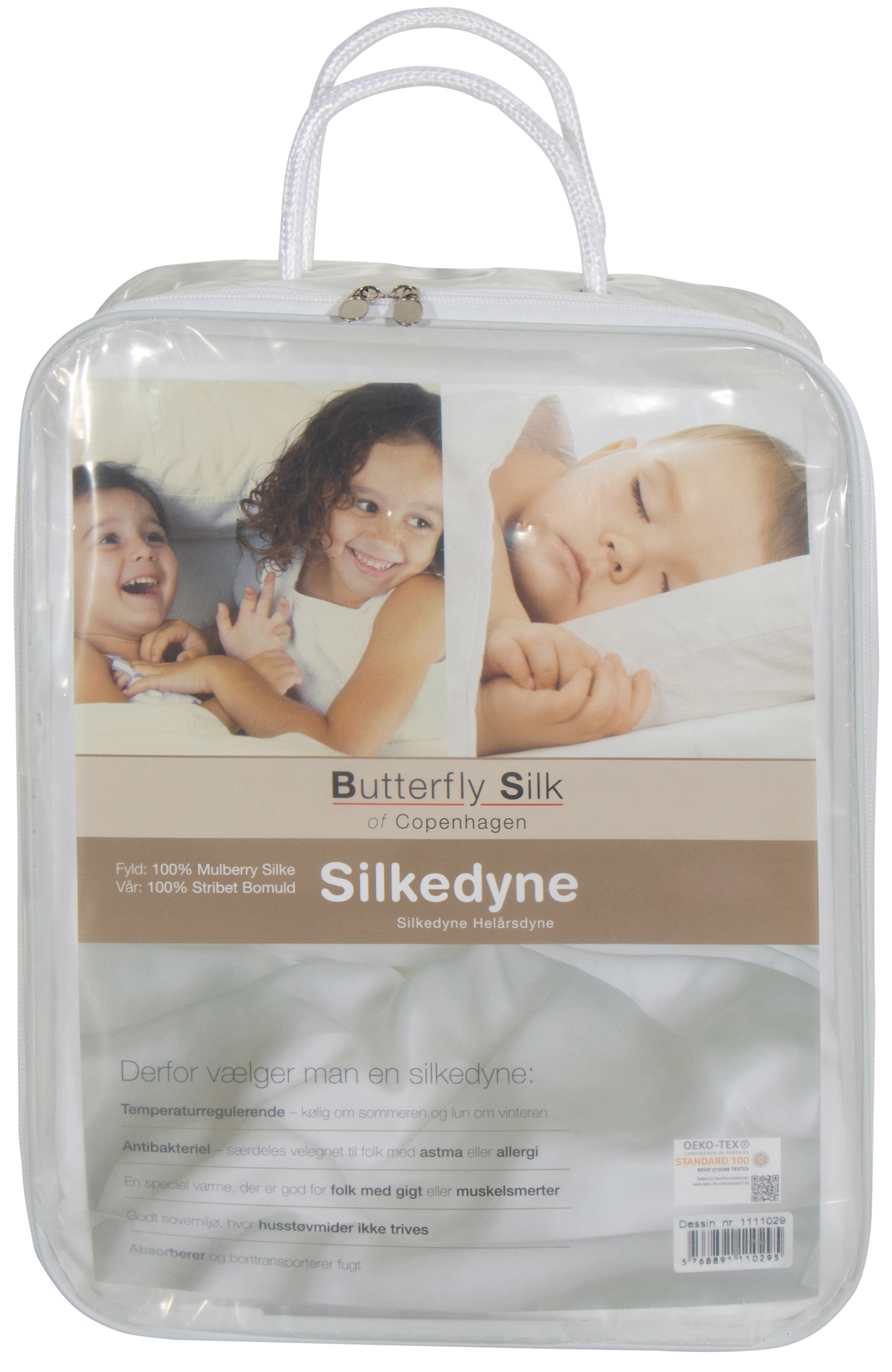 Forside »Dyner » Type dyne » Silkedyner Baby silkedyne - Helårs Lun babydyne - 70x100 cm - Butterfly Silk baby dyne Spar26% Butterfly Silk 1.199,00885,00NOKSpar 314,- Få på lager Trustpilot Antall Legg i kurv Se mer fra: Butterfly Silk Artikkelnummer:1111028 Les vår dyneguide Les om vedlikehold av dyner og puter Se vårt store utvalg av puter Har du spørsmål om produktet? Helårs - BabydyneButterfly Silk100% mulberry (morbær) silke Størrelse: 70x100 cm - babydyne Type: Helårs baby silkedyne Brand: Butterfly Silk - babydyne Silketetthet: 325g m2 Fyllvekt: 250g Fyll: 100% mulberry (morbær) silke Bolster: 100% myk stripet bomull cambric Vask: Kun profesjonell våtrens Allergivennlig: Ja Garanti: 5 år Leveres i eksklusiv oppbevaringstaske Sertifisering: STANDARD 100 by OEKO-TEX® (BEHO 070288) Se alle puter til barn her Det er mange dokumenterte fordeler med silke! Allergivennlig Anti-bakteriell Fuktabsorberende Temperaturregulerende og avvisende Babysilkedynen med silke og bomull er en deilig babydyne fra Butterfly Silk. Dynen er laget av 100 % langfibret mulberrysilke, som strekkes for hånd og legges i flere hundre fine lag. Dermed oppnår du den effektive temperaturregulerende og fuktabsorberende effekten fra silken. Vi anbefaler silkedynen til barn som blir varme om natten. Her får du en dyne av høy kvalitet med silkens gode egenskaper. De lange finvevde silketrådene lar kroppen enkelt kvitte seg med overflødig varme og gir en behagelig temperatur hele natten, noe som fremmer en roligere og jevnere søvn. Se vårt store utvalg av sengetøy i baby størrelse Silkedyner er temperaturregulerende og svært fuktabsorberende, samt allergivennlige. Silkedynen er fylt med 100% mulberry silke. Morbær silke anses som den beste typen silke til å produsere dyner av. Butterfly Silk er et dansk merke med et stort utvalg av de lekreste silkeprodukter. Silkedynerne kommer i mange udgaver, alle med 100% morbær silkefyld, så der er en dyne der matcher lige præcis det behov du har. Om det er en almindelig silkedyne, luksus silkedynen eller den ekstra åndbare bambus/silke serie, så finder du det fra Butterfly Silk. De silkeprodukter, som du finder i vores sortiment, fremstilles udelukkende af 100% morbærsilke, og selve fremstillingsprocessen foregår uden brug af kemikalier. Dette sikrer, at produkterne er af absolut højeste kvalitet og ikke indeholder skadelige stoffer. Derfor er silkeprodukter ideelle for både barn og voksne med allergi. Tilbake til Silkedyner Du kan også være interessert i: Silkedyne 140x200 cm - Helårsdyne med 100 % langfibret morbærsilke - Nordic Comfort dyneSilkedyne - Superior silke Fra: Nordic Comfort 100 % langfibret morbærsilke Veiledende utsalgspris : 3.912,00 Spar : 913,00 4.299,00 NOK2.999,00 NOK Silkedyne 140x200 cm - Helårsdyne med silketrekk - Nordic Comfort 100% langfibret mulberrySilkedyne - Excellence silke Fra: Nordic Comfort Håndlaget - Langfibret mulberry silke + silkebolster Veiledende utsalgspris : 5.797,00 Spar : 798,00 8.999,00 NOK4.999,00 NOK