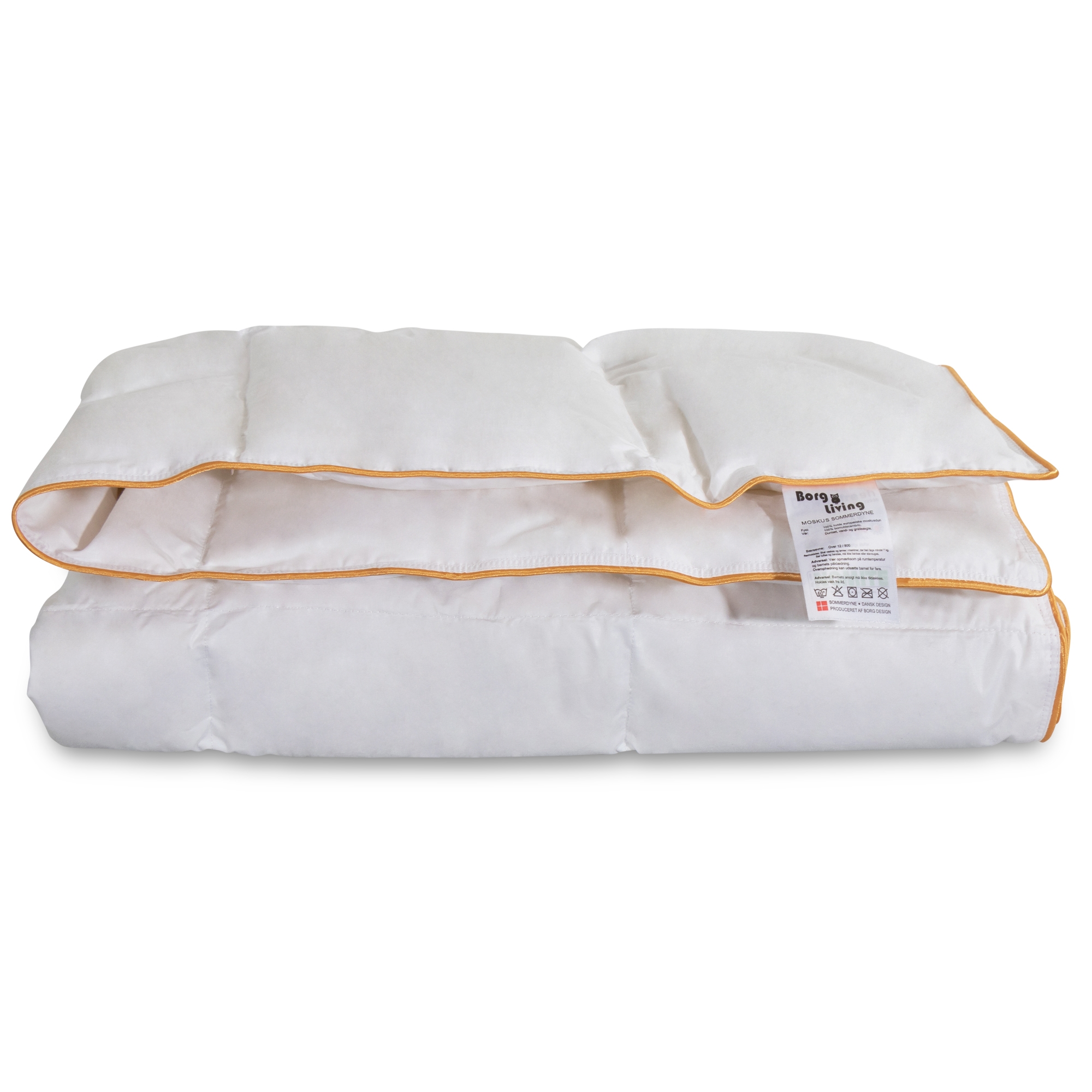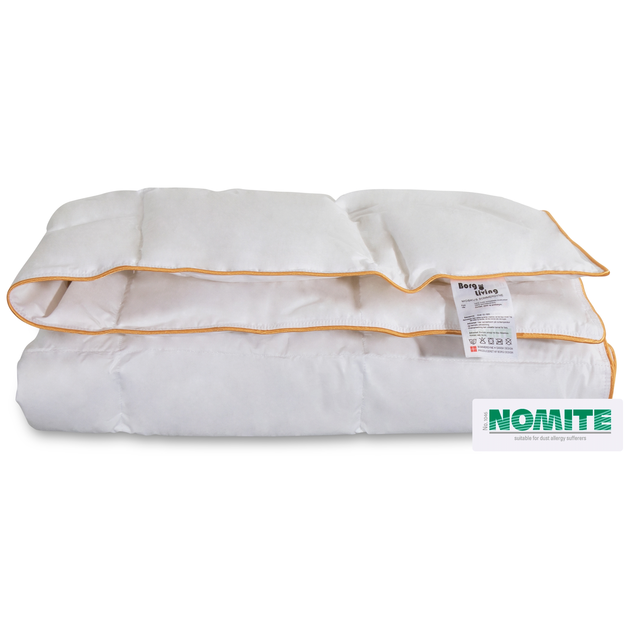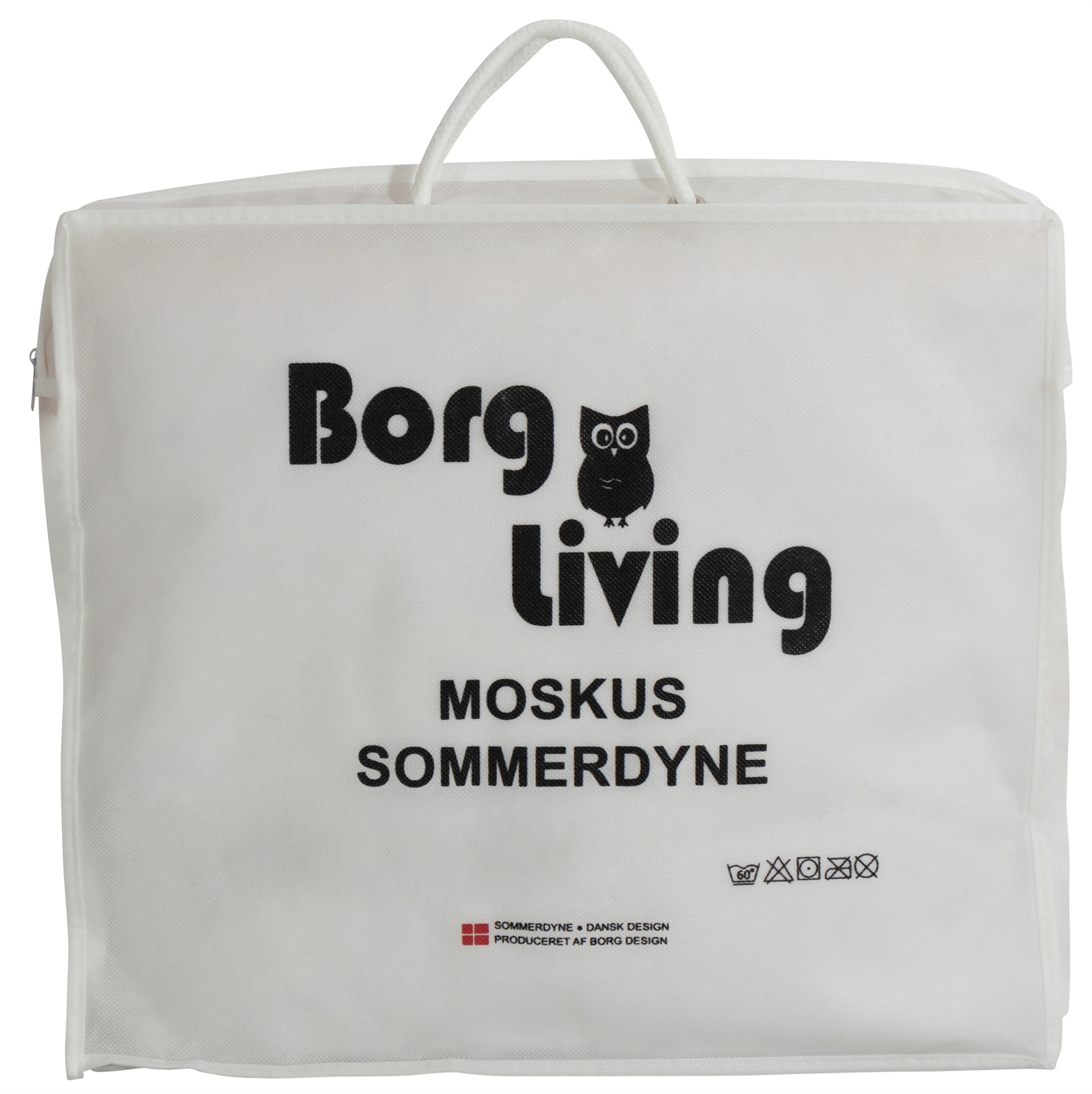 Forside »Dyner » Varmeklasse » Sommerdyner Baby sommerdyne 70x100 cm - 100% moskusdun babydyne - Borg Living dyne til baby Spar54% Borg Living 1.299,00599,00NOKSpar 700,- På lager Trustpilot Antall Legg i kurv Se mer fra: Borg Living Artikkelnummer:BL236 Les vår dyneguide Les om vedlikehold av dyner og puter Se vårt store utvalg av puter Har du spørsmål om produktet? 100% moskusdun - Borg LivingBæreevne: Over 12Sommerdyne Størrelse: 70x100 cm babydyne Type: Sommerdyne - sval dyne Fyld: 100% nye hvite europeiske moskusdun Brand: Borg Living Bæreevne: Over 12 (gammel målemetode) Bæreevne: 800 (ny målemetode) Fyldvekt: 80 g Bolster: 100 % bomull super cambric 60/60 Konstruksjon: 3x5 kassettdyne med guldkant Vask: 60° (Viktig å bruke enzymfritt vaskemiddel) Tørketrommel: Må tørkes med tørkekuler Garanti: 5 år Sertifisering: NOMITE - Allergivennlig og fri for husstøvmidd Sertifisering: DOWNAFRESH - 100% rene dun Sertifisering: STANDARD 100 by OEKO-TEX® (BEHO 062282) / BJ025 147484 TESTEX Se alle våre puter til barn her Baby sommerdyne - En deilig kjølig og luftig sommerdyne med europeisk moskusdun. Dynen er perfekt til den lille babyen i de varme sommernattene, hvor det kan være vanskelig for babyen å regulere varmen selv. Babydynen er fylt med myke, fine moskusdun som likner edderdun, og gjør dynen lett og pustende. De myke og lette dunene gjør at dynen faller mykt rundt barnets kropp. Dynen er sydd i kassetter, slik at dunet fordeler seg jevnt. Sommerdynen har et deilig mykt bolster i 100% bomullscambric, så tettvevd at støvmidd ikke kan trenge igjennom. Sommerdynen har en lang rekke sertifiseringer som din garanti for en god og hygienisk kvalitetsdyne. Dynen er NOMITE-sertifisert, noe som betyr at den er ytterst egnet for allergikere, siden den er fri for husstøvmidd. Dynen er også DOWNAFRESH-sertifisert, noe som garanterer at dunene som brukes i produksjonen er vasket og renset i overensstemmelse med de strenge europeiske standardene. DOWNAFRESH-sertifiseringen garanterer også at det innsamlede dunet overholder lovgivningen om god dyrevelferd. Det danske merket Borg Living produserer eksklusive serier av dyner, puter og boligtekstiler til hjemmet ditt. Merket, som ble etablert i 2013, er kjent for sin innovasjon innen kvalitet og design. Borg Livings fantastiske produkter bidrar til optimal og behagelig nattesøvn og dekorerer hjemmet ditt med moderne og lekkert boligtilbehør. Tilbake til Sommerdyner