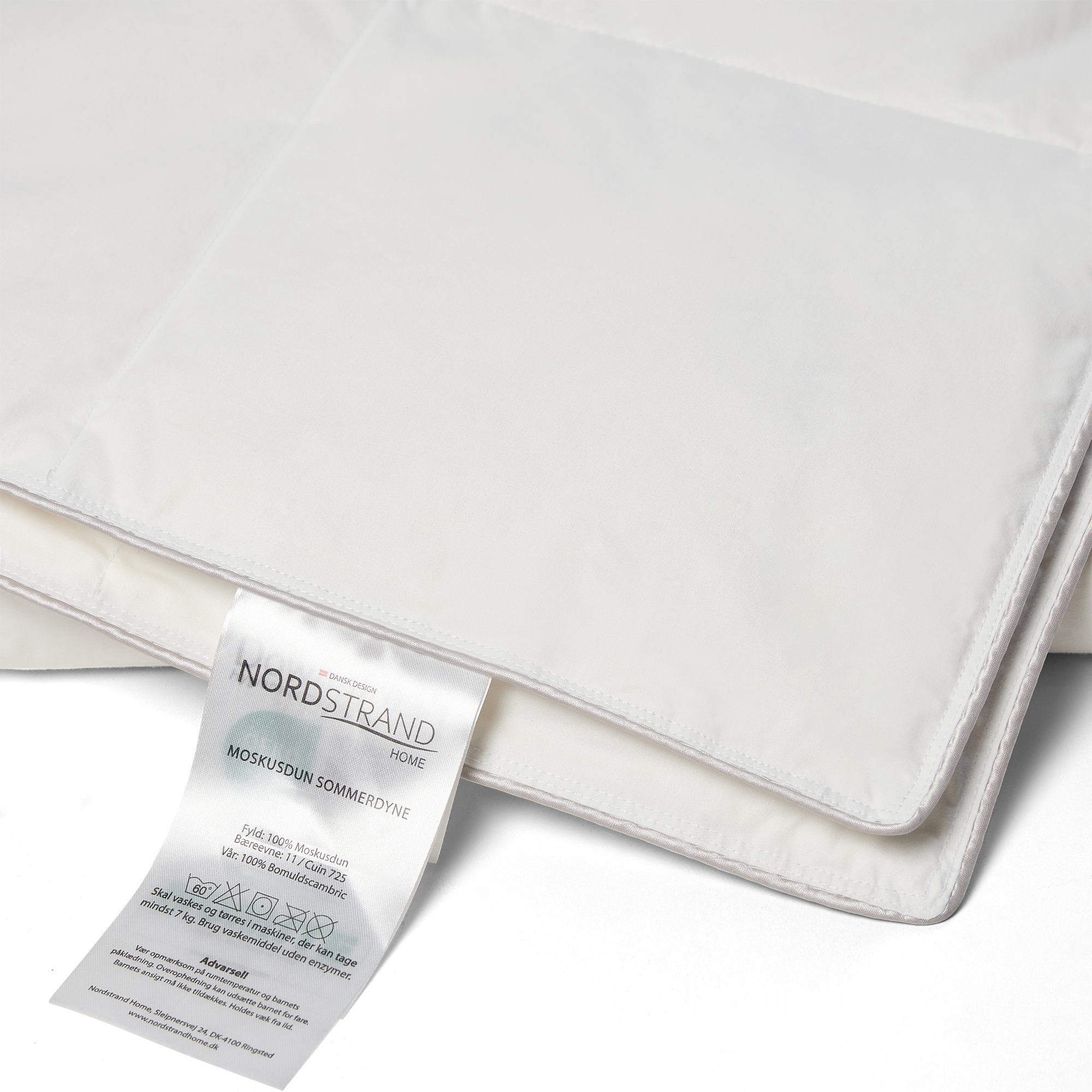 En lett, luftig og sval babydyne med fine og myke dun til årets varmeste måneder. En baby sommerdyne produsert med 100% eksklusive moskusdun og 100% duntett vevd bomullscambric trekk. Dundynen har en bæreevne på 11, som gir barnet en dyne av høy kvalitet med fokus på optimal balanse mellom god pusteevne og en deilig letthet. Med hele 5 godkjente og høyt rangerte sertifiseringer er barne dynen både allsidig og allergivennlig, noe som også viser at det er tenkt nøye gjennom detaljene i denne myke sommerdynen.