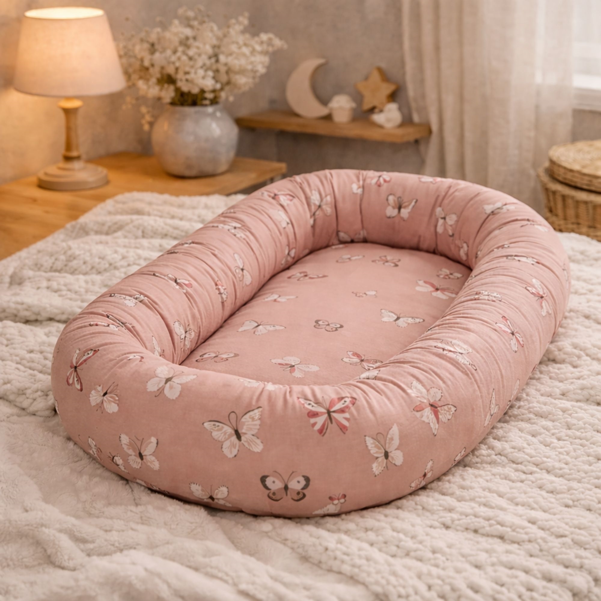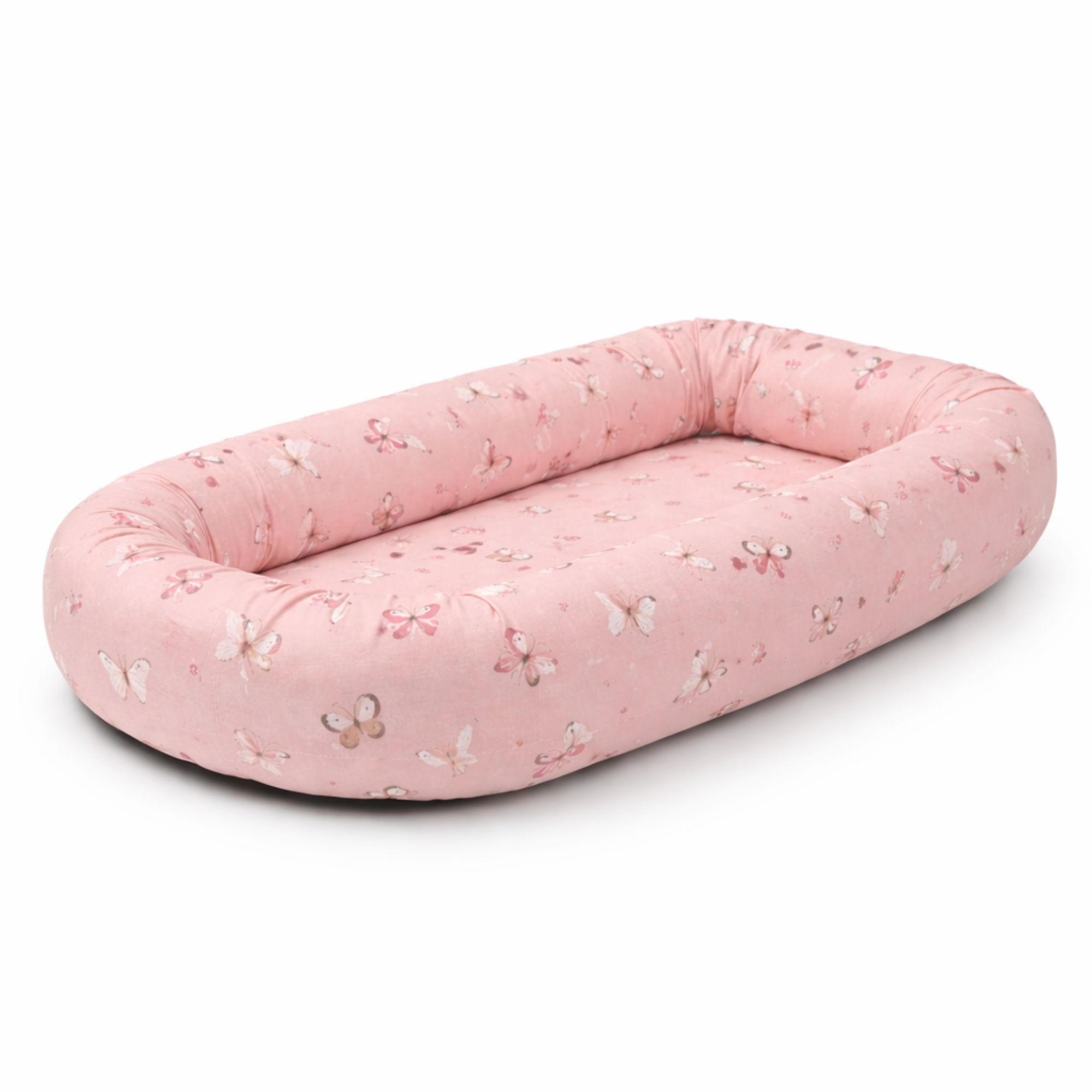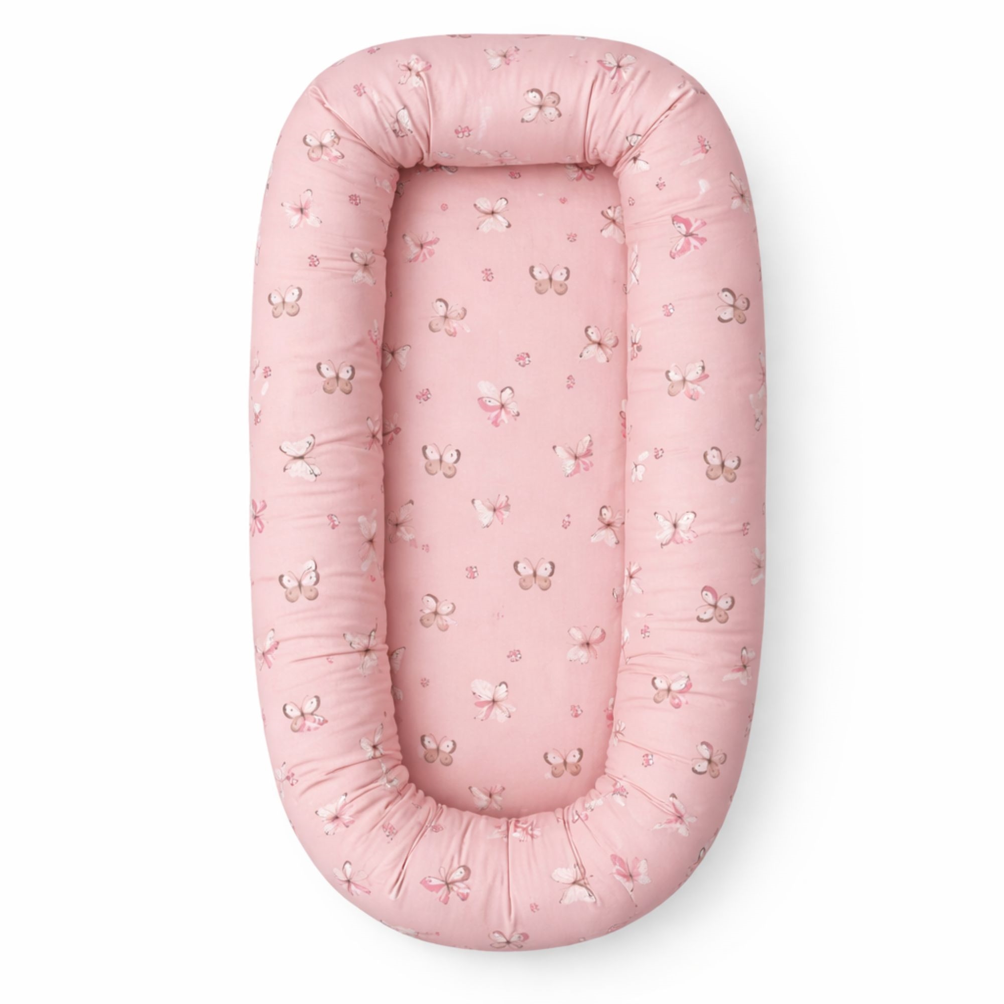 Behagelig og trygg babynest 82x46 cm i lyserosa med sommerfugler