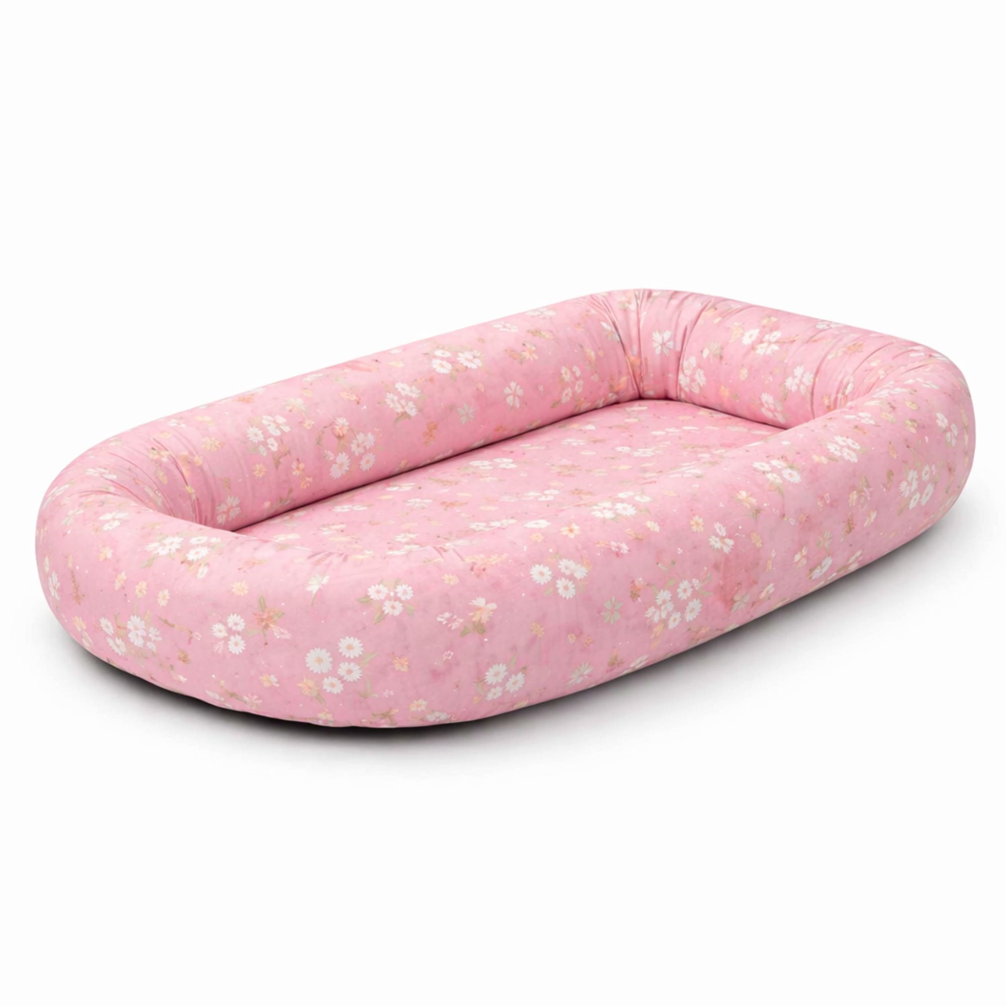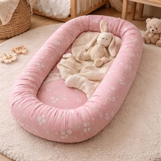 Behagelig og trygg babynest 86x46 cm i lyserosa med kaniner og blomster