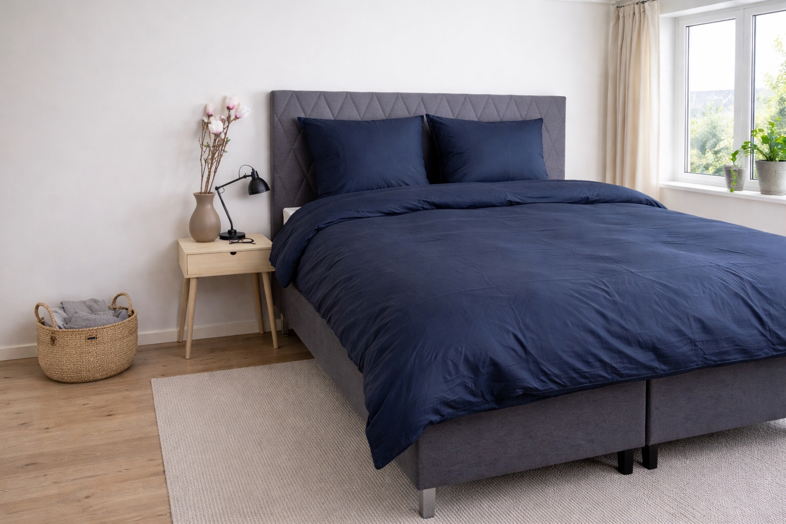 Bambus dobbelt sengetøy - 200x200 cm - 100% naturlig bambus - Nature By Borg - Mørkeblått satengvevd dobbelt dynetrekk