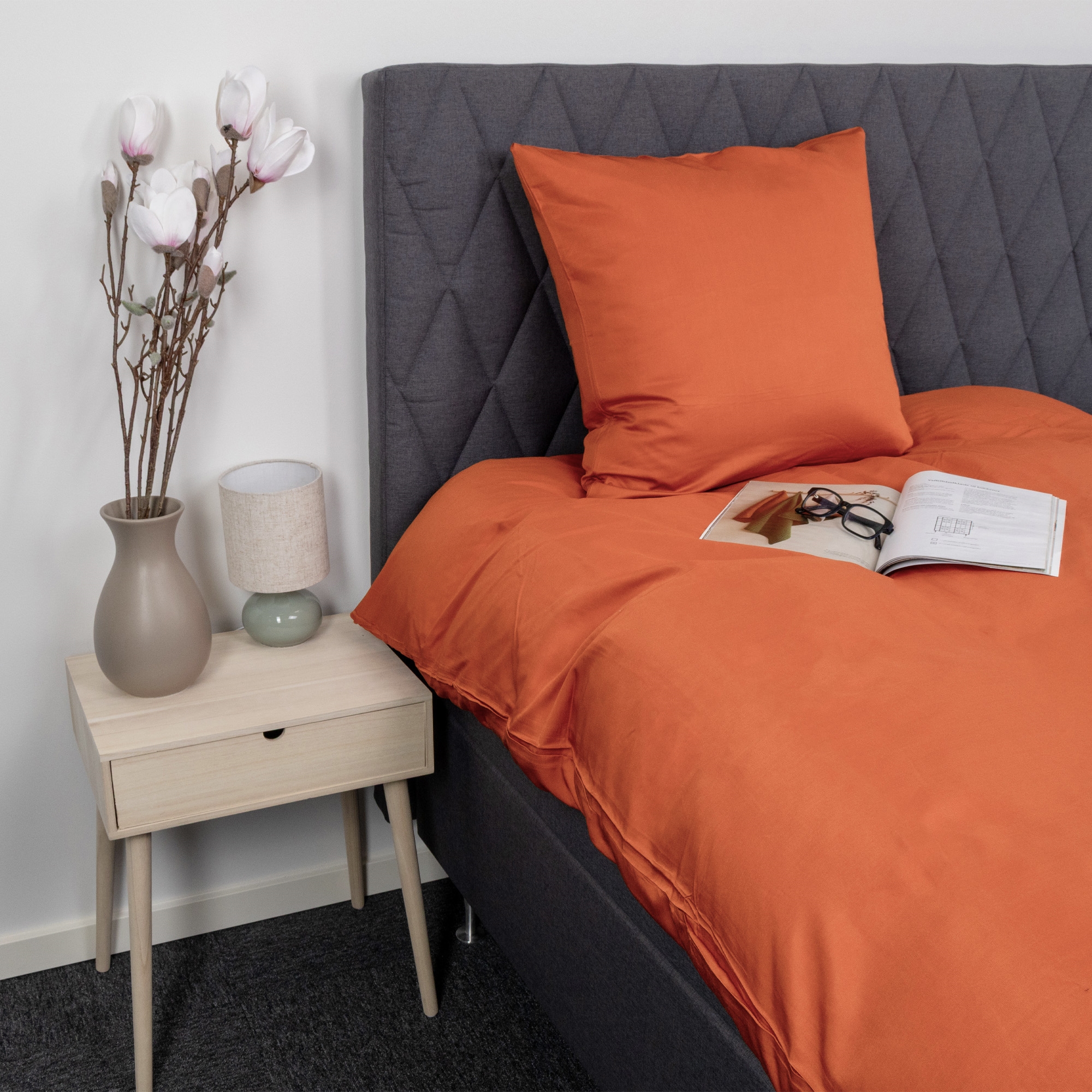 Forside »Sengetøy » Dobbelt sengetøy » Dobbelt sengetøy 200x220 cm Bambus dobbelt sengetøy - 100% naturlig bambus - 200x220 cm - Oransje, satengvevd dobbeltsengsett 2 x putetrekkSpar54% Nordstrand Home 2.399,001.099,00NOKSpar 1.300,- På lager Trustpilot Antall Legg i kurv Se mer fra: Nordstrand Home Artikkelnummer:2303-5 Les vår sengetøysguide Se vårt store utvalg av lakener Se vårt store utvalg av dyner 200x220 Har du spørsmål om produktet? 100 % naturlig bambusSvetteabsorberende og pustendeAllergivennlig og antibakteriell Dynetrekk: 200x220 cm Putetrekk: 2 stk. á 60x63 cm Materiale: 100 % ren naturlig bambus Vevning: Satinvevd Trådtett: 200TC - Myk og fin Farge: Oransje Design: Ensfarget Merke: Nordstrand Home Lukning: Dynetrekk med glidelås, putetrekk med overlapp Vask: 40° skånevask (Viktig med enzymfritt vaskemiddel) Tørketrommel: Ja Kan strykes: Ja Sertifisering: STANDARD 100 by OEKO-TEX® (15.HCN.61893 Hohenstein HTTI) Dobbelt sengetøy i myk bambus Når du har prøvd å sove med sengetøy av bambus, vil du ikke ønske noe annet. Sengesettet er produsert i 100% ren naturlig bambus og er satengvevd uten bruk av kjemikalier. Bambus sengetøy gir en perfekt blanding av komfort og luksus. Laget av naturlige bambusfibre, er dette sengetøyet utrolig mykt og skånsomt mot huden, og gir deg en god natts søvn. I tillegg er sengetøy av bambus kjent for sin fantastiske holdbarhet, slik at du kan nyte kvaliteten i mange år fremover. En ekstra fordel med sengetøy av bambus er at det er enkelt å vedlikeholde. Den tåler maskinvask og holder seg godt uten å bli slitt, slik tradisjonelt sengetøy ofte gjør. Fordeler med bambus: Uovertruffen komfort: Bambusfibre er kjent for sin mykhet og behagelighet. Langsiktig holdbarhet: Et slitesterkt materiale som varer i årevis og sikrer en klok investering. Lett vedlikehold: Vaskes enkelt i maskin og holder seg flott uten å slites. Hvis du ønsker sengetøy som kombinerer holdbarhet, kvalitet og komfort, er bambus sengetøy det perfekte valget. Kjøp matchende putetrekk til dine ekstra puter her Med Nordstrand Home får du hjemmetekstiler i dansk design – i en nordisk stil. Nordstrand Home legger stor vekt på følelsen av velvære i et stilfullt, men samtidig avslappende miljø. Med Nordstrand Home trenger du ikke gå på akkord, du finner alltid produkter i klassiske og moteriktige farger. Nordstrand Home – Så du føler deg hjemme! Utforsk vårt brede sortiment av kvalitetslaken her Tilbake til Dobbelt sengetøy 200x220 cm