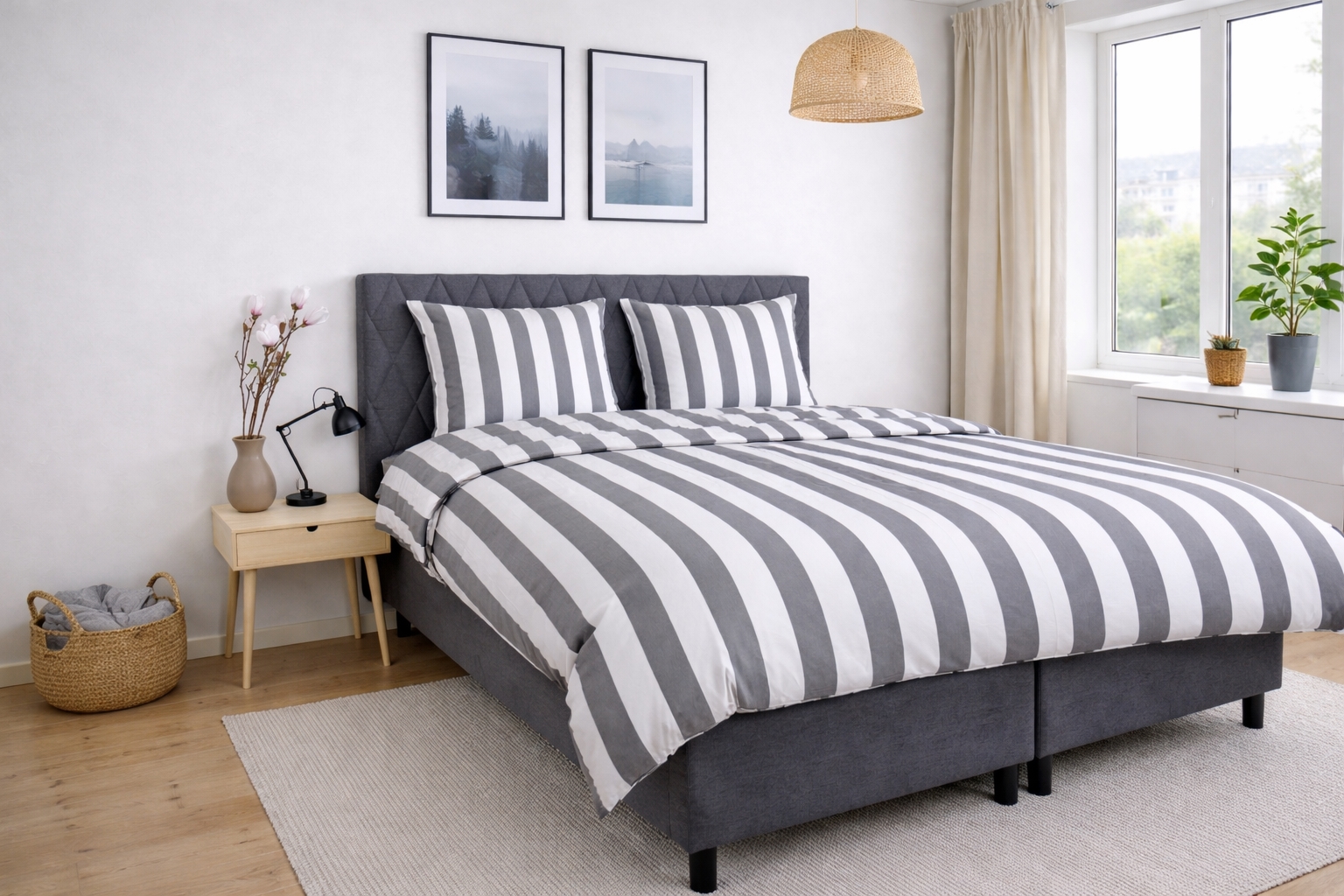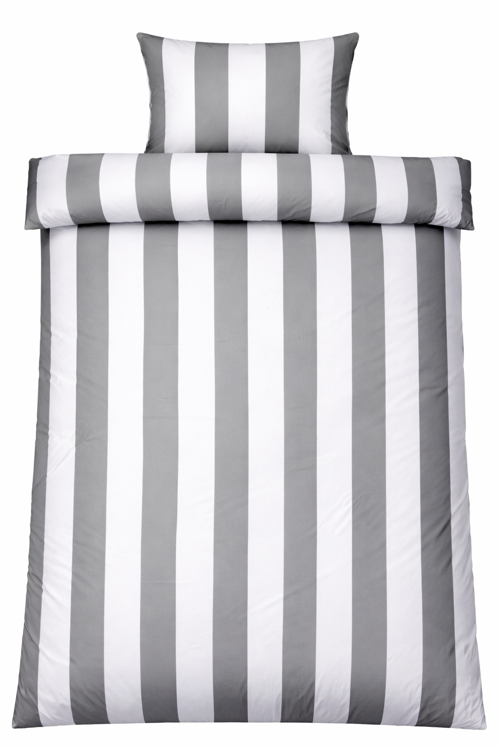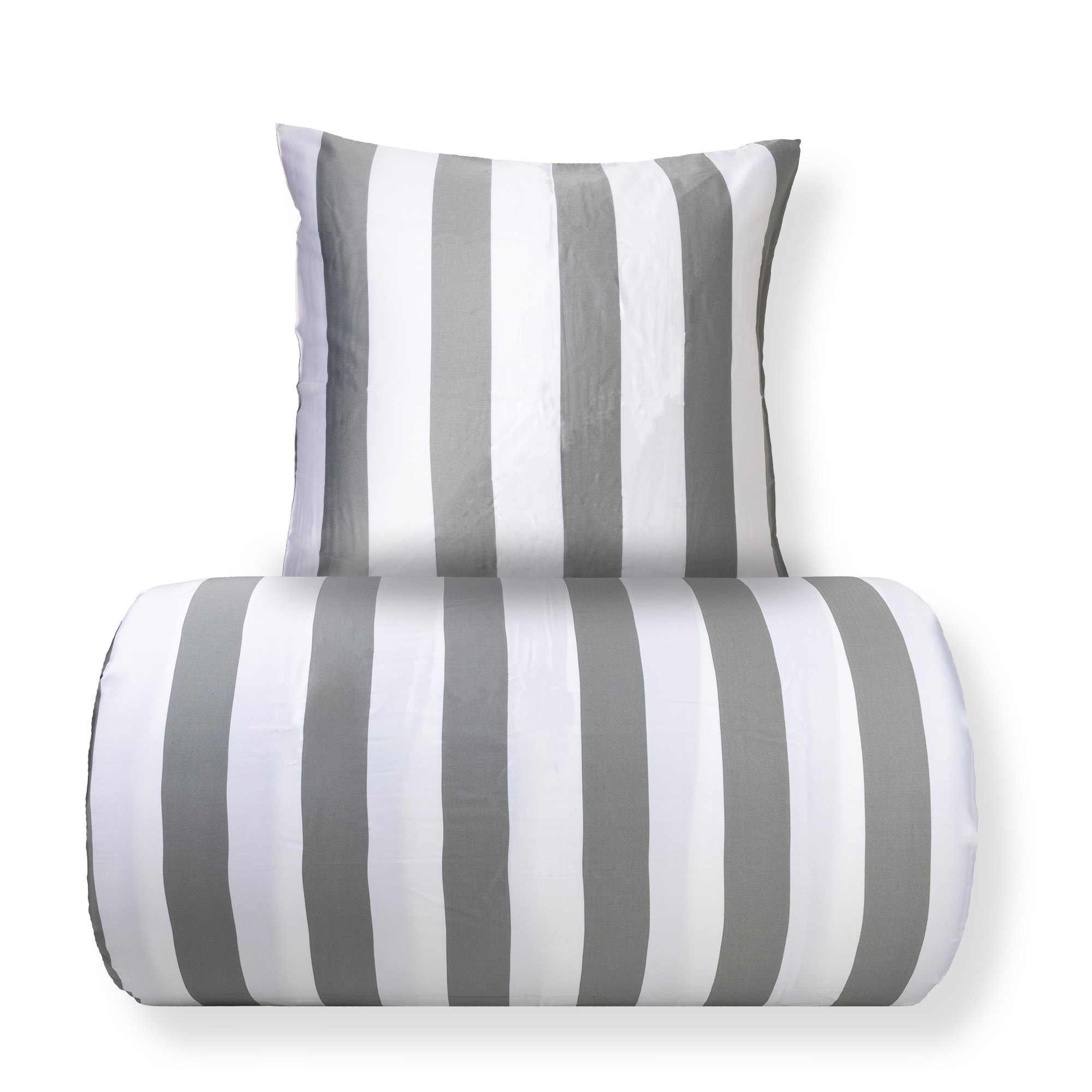 Bambus sengetøy - 100% naturlig bambus - 140x220 cm - Grå brede striper - Satengvevd sengesett