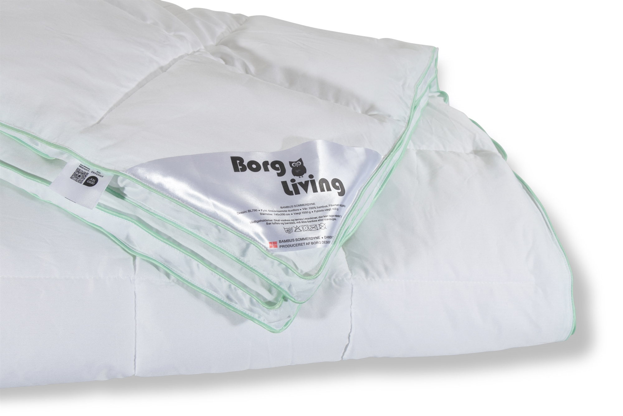 Forside »Dyner » Varmeklasse » Sommerdyner Bambus sommerdyne 140x200 cm - sommerdyne med ekstra myk bambus og dunfiber - Borg Living Spar53% Borg Living 1.499,00699,00NOKSpar 800,- På lager Trustpilot Antall Legg i kurv Se mer fra: Borg Living Artikkelnummer:BL790-1 Les vår dyneguide Les om vedlikehold av dyner og puter Se vårt store utvalg av puter Har du spørsmål om produktet? Den mykeste dyne100% bambusAntibakteriell Størrelse: 140x200 cm - Enkeltdyne Type: Bambus sommerdyne Merke: Borg Living Fyllvekt: 400 g Fyll: 100 % silikoniserte dunfibre Bolster: 100 % bambus Konstruksjon: 7x10 kassettdyne - med 3 cm panelkant Vask: 40° (Viktig å bruke enzymfritt vaskemiddel) Tørketrommel: Ja Garanti: 2 år Sertifisering: STANDARD 100 by OEKO-TEX® (12. HCN. 05085) Leveres i oppbevaringspose Se alle våre hodeputer her Sommer bambusdynen fra Borg Living, en dyne med ekstra mykhet og superkomfort. Bambusdynen holder deg behagelig kjølig på varme sommernätter. Dynen er produsert med en deilig myk bolster av 100% bambus og ekstra myke, fine silikoniserte dunfibre. Hvis du savner en myk dyne med god isolasjon, ekstra myk og deilig, samt en helt unik vekt, så er sommer bambusdynen det du leter etter. Så hvis du er på utkikk etter en allergivennlig sommerdyne, er dette noe for deg. Se vårt store utvalg av sengetøy i 140x200 cm her Hvorfor bambus? Bambus er et av de mest bærekraftige materialene for tiden. Når bambus høstes brukes alt fra planten, fra de indre fibrene til det harde skallet. Til dyner som denne, og tekstiler, brukes de myke fibrene i kjernen. Disse fibrene har helt unike egenskaper, som overføres til produktene som lages. Med en bambusdyne kan du derfor forvente: ◾ Høy fukttransport og pusteevne ◾ Unik og luksuriøs mykhet ◾ Ekstra rask tørkeevne ◾ Antibakterielt materiale ◾ Ekstra høy slitestyrke ◾ En spesiell balanse mellom tyngde og letthet ◾ Enkelt vedlikehold Det danske merket Borg Living produserer eksklusive serier av dyner, puter og boligtekstiler til hjemmet ditt. Merket ble etablert i 2013 og er kjent for sin innovasjon innen kvalitet og design. Borg Livings fantastiske produkter bidrar til en optimal og behagelig nattesøvn samtidig som de forskjønner hjemmet ditt med moderne og lekkert boligtilbehør. Tilbake til Sommerdyner