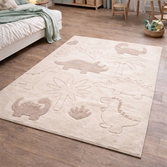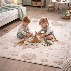 Savner du en enkel og grei måte å skape helhet i hjemmet ditt? Da kan dette flotte gulvteppet være det elementet som binder innredningen sammen. Skap et hyggelig og fantasifullt univers på barnerommet med dette fine beige gulvteppet med dinosaurer fra Eclipse Kids. Det fine dino-motivet i rolige naturfarger gjør teppet til et dekorativt og lekent element som barna vil elske. Teppet fungerer perfekt som samlingspunkt for lek. På grunn av teppets materialer (PP og PES) er det robust og egnet til daglig bruk på barnerommet, hvor det både lekes, koses og leses godnatt historier. Det myke dinosaurgulvteppet er ideelt som leketeppe midt i rommet, under et lite bord eller som et mykt underlag ved sengen. Et opplagt valg for deg som ønsker et praktisk og dekorativt barneteppe i beige nyanser som skaper varme og trygghet i innredningen. OBS: Gulvteppet fås også i rund utgave. Se vårt store utvalg av ulike barnetekstiler her Med Nordstrand Home er du sikret boligtekstiler i dansk design - i nordisk stil. Nordstrand Home legger stor vekt på følelsen av velvære i et flott, men samtidig avslappet miljø. Med Nordstrand Home trenger du ikke gå på kompromiss, du finner alltid produkter i klassiske og moteriktige farger. Nordstrand Home – Så føler du deg hjemme!