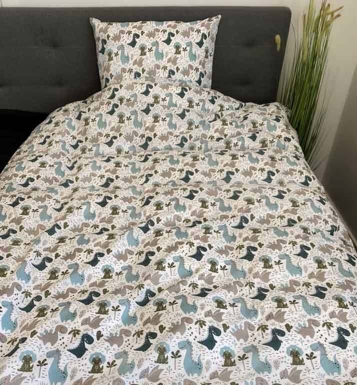 Forside »Sengetøy » Sengetøy til barn » Sengetøy til barn 140x200 cm Barnesengetøy 140x200 cm - Sengetøy med dinosaurmotiv - Dyne betrakt i 100% bomull - By Night sengesett Spar72% Licens 699,00199,00NOKSpar 500,- Få på lager Trustpilot Antall Legg i kurv Se mer fra: Licens Artikkelnummer:107-1 Les vår sengetøyguide Se vårt store utvalg av laken Se vårt store utvalg av dyner 140x200 Har du spørsmål om produktet? Sengetøy med dinosaurer100% bomull140x200 cm Dynetrekk: 140x200 cm Putetrekk: 60x63 cm Materiale: 100% bomull Veving: 220TC (trådantall = antall tråder per kvadrattomme) Farge: Hvit, blå og sand - sengesett med print Motiv: Dinosaurer i grønne og blå nyanser Design: Samme motiv på begge sider Lukking: Dyne og pute med skjult glidelåslukking Vask: 60° Tørketrommel: Ja Kan strykes: Ja Sertifisering: STANDARD 100 by OEKO-TEX® (20180K0658) Sengesett med et fint print av dinosaurer i grønnlige og blålige nyanser. La den lille (eller store) dino-fanen sovne blant favorittdyrene sine. Sengetøyet er laget av 100% myk bomull, og ser flott ut på alle barnerom. By Night - preget av høy kvalitet og dansk design. By Night produserer deilige laken og sengetøy til både barn og voksne, omtanke for tidens trender – alltid i moteriktige farger og design. Her kan du finne deilige og myke kvalitetslaken Tilbake til Sengetøy til barn 140x200 cm