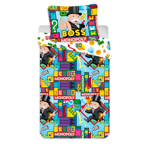 Forside »Sengetøy » Sengetøy til barn » Sengetøy til barn 140x200 cm Barnesengetøy - 140x200 cm - Monopoly sengetøysett - Vendbart dynetrekk i 100% bomull Spar30% Licens 499,00349,00NOKSpar 150,- På lager Trustpilot Antall Legg i kurv Se mer fra: Licens Artikkelnummer:1247-1 Les vår sengetøyguide Se vårt store utvalg av lagner Se vårt store utvalg av dyner 140x200 Har du spørsmål om produktet? Høy pusteevneMykt - 100% bomullOEKO-TEX® sertifisert Dynetrekk: 140x200 cm Putetrekk: 60x63 cm Materiale: 100% myk bomull Motiv: Monopoly brettspillet Design: vendbart - Forside fylt med alt godt fra spillet, bakside med all-over print Lukking: Dyne med knapper, putetrekk med overlapp Vask: 60° Tørketrommel: Ja Tåler stryking: Ja Sertifisering: STANDARD 100 by OEKO-TEX® (2012PK0016). Din garanti for at produktet er fritt for helseskadelig kjemi. Sengetøysett i 100% myk bomull, med design av Monopoly brettspillet. Perfekt for alle som elsker å spille Monopoly med familie og venner. Produsert med lette og pustende bomullstråder som gir sengetøysettet en følelse av mykhet, som gjør at dynen føles behagelig for barnet å sove med. Gi barnerommet et innredningsløft med dette Monopoly sengetøysettet. Sengetøysettet er vendbart, med design av Monopoly på forsiden og et all-over print på baksiden. Sengetøysettet er produsert i 100% myk bomull som gjør settet slitesterkt og med høy pusteevne. Den rene bomullskvaliteten gir et lekkert og mykt sengetøysett som bidrar til å fremme sovekomfort for barnet. Bomullssengetøy kan vaskes ved 60° i vaskemaskin, noe som også bidrar til å opprettholde et høyt hygienisk nivå. Sengetøyet er i tillegg fremstilt med OEKO-TEX sertifisering, som er din garanti for at settet er fritt for skadelig kjemi. Gå på jakt etter favorittene og mye mer i vårt store utvalg av tilbehør til barneuniverset For barnet bør sengen være et trygt sted og alle elementene skal sammen skape myke og gode omgivelser for barnet å finne ro i. Bruk derfor gjerne barnets interesser for å skape et trygt soverom for barnet. Hos oss kan du finne et stort utvalg av tilbehør til sengen og barnerommet, alt fra lagner til dyner, puter, sengetøy og mye mer, og masse produkter med alle barnas favoritter på. Alt sammen elementer som kan bidra til å skape riktig sovemiljø og rom for ditt barn. Her kan du finne deilige og myke kvalitetslagner Tilbake til Sengetøy til barn 140x200 cm