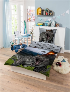 Forside »Sengetøy » Sengetøy til barn » Sengetøy til barn 140x200 cm Barnesengetøy - 140x200 cm - Dinosaur sengetøy - Dynetrekk med vendbart design - Farlig t-rex og vulkan - Sengetøy i 100% bomull Spar30% Licens 499,00349,00NOKSpar 150,- På lager Trustpilot Antall Legg i kurv Se mer fra: Licens Artikkelnummer:9903-1 Les vår sengetøyguide Se vårt store utvalg av laken Se vårt store utvalg av dyner 140x200 Har du spørsmål om produktet? Favorittdino med vendbart designMykt og deilig bomullOEKO-TEX® sertifisert Dynetrekk: 140x200 cm Putetrekk: 60x63 cm Materiale: 100% myk bomull Farge: Multifarget Motiv: Vendbart design - forside med Tyrannosaurus rex, bakside med all-over print av dinosaurfotspor Lukking: Dyne med knapper og putetrekk med overlapp Vask: 60° Tørketrommel: Ja Tåler stryking: Ja Sertifisering: STANDARD 100 by OEKO-TEX® (17.HPK.23879). Din garanti for at produktet er fritt for helseskadelig kjemi. Den farlige t-rex foran vulkanen i utbrudd gir sengetøyet et flott og actionpreget utseende. Et kult barnesengesett for alle dino-elskere. Produsert i 100% bomull for god sovekomfort og pusteevne. Et slitesterkt sett sengetøy til barn som gjør soveopplevelsen mer innbydende. Mykt og deilig sengetøy med smart design som gjør sengetøyet vendbart. På den ene siden av sengetøyet er det motiv av en brølende dinosaur (tyrannosaurus rex) som står foran en vulkan i utbrudd. Vender du sengesettet om, får du en side med avtrykk av dinosaurføtter. Sengesettet er produsert i 100% myk bomull som gjør settet slitesterkt og med høy pusteevne. Den rene bomullskvaliteten gir et deilig og mykt sengesett som bidrar til å fremme sovekomfort for barnet. Bomullssengetøy kan vaskes ved 60° i vaskemaskin, noe som også bidrar til å opprettholde et høyt hygienisk nivå. Sengetøyet er i tillegg fremstilt med OEKO-TEX-sertifisering, som er din garanti for at settet er fritt for skadelig kjemi. Gå på jakt etter favorittene og mye mer i vårt store utvalg av tilbehør til barnerommet For barnet bør sengen være et trygt sted, og alle elementene skal sammen skape myke og gode omgivelser for barnet å finne ro i. Bruk derfor gjerne barnets interesser for å skape et trygt soverom for barnet. Hos oss kan du finne et stort utvalg av tilbehør til sengen og barnerommet, fra konvoluttlaken til dyner, puter, sengetøy og mye mer, og masse produkter med alle barnas favoritter. Alt sammen elementer som kan bidra til å skape riktig sovemiljø og rom for ditt barn. Her kan du finne deilige og myke kvalitetslaken Tilbake til Sengetøy til barn 140x200 cm