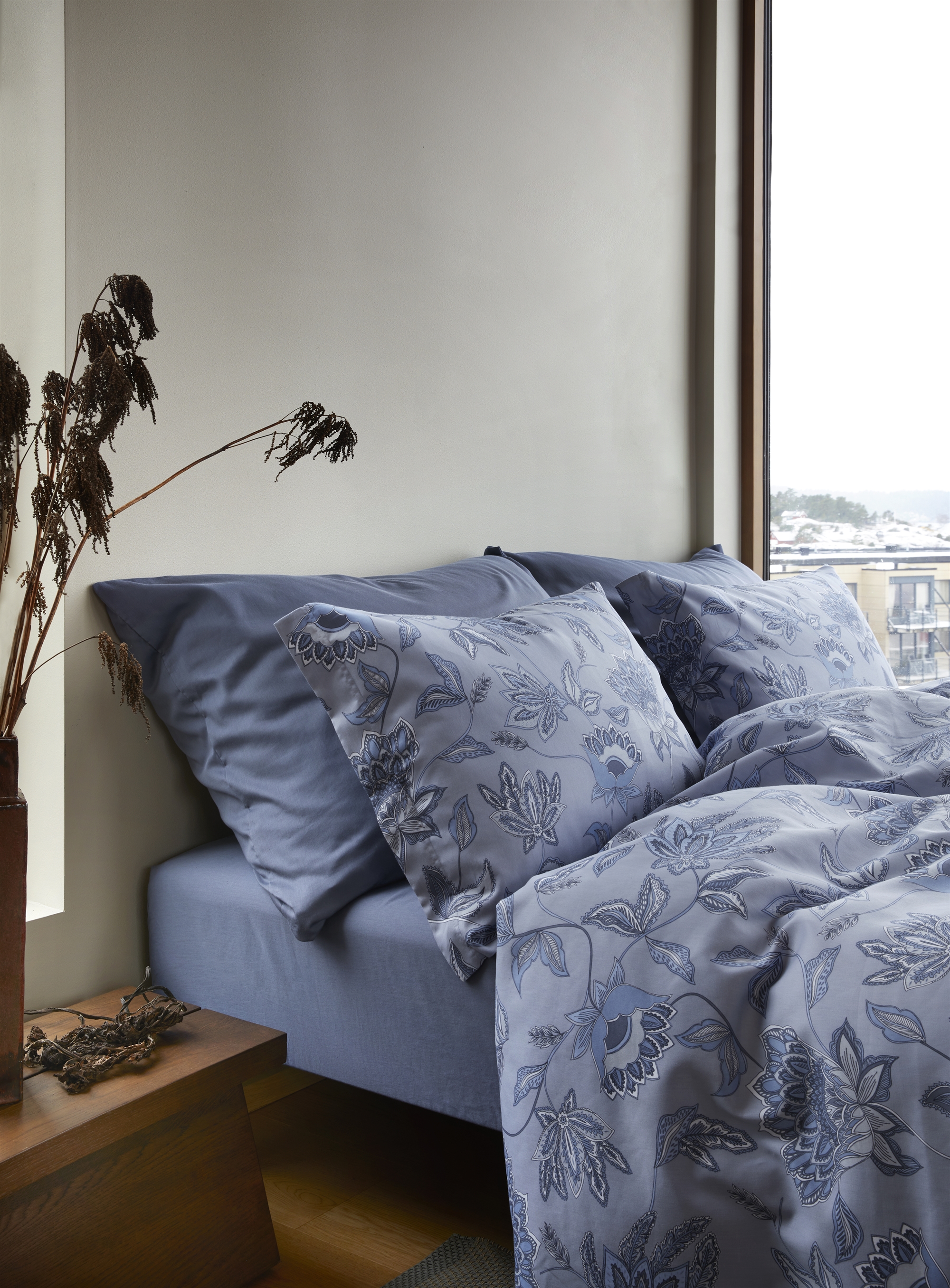 Forside »Sengetøy » Dobbelt sengetøy » Dobbelt sengetøy 200x220 cm Blomstret dobbelt sengetøy 200x220 cm - 100% bomullssatin - Mille denim blå satin sengesett - Høie Of Scandinavia sengetøy 2 x putetrekkSpar13% Høie Of Scandinavia 2.299,001.999,00NOKSpar 300,- På lager Trustpilot Antall Legg i kurv Se mer fra: Høie Of Scandinavia Artikkelnummer:8217-5 Les vår sengetøysguide Se vårt store utvalg av laken Se vårt store utvalg av dyner 200x220 Har du spørsmål om produktet? Luksuriøst og mykt sengetøy Ekstra fin og tett vevningEASY CARE behandlet - for mindre krøll Dynetrekk: 200x220 cm Putetrekk: 2 stk. á 60x63 cm Materiale: 100% bomullssatin Vevning: Ekstra fin 220TC (Thread count = antall tråder per kvadrattomme) Farge: Blå med blomster Design: Mille denim blå Merke: Høie of Scandinavia Lukking: Dynetrekk med glidelås, putetrekk med overlap Vask: 60° Tørketrommel: Ja Tåler stryking: Ja Sertifisering: STANDARD 100 by OEKO-TEX® (M2AMSU2W9). Din garanti for at produktet er fri for helseskadelig kjemi. Sertifisering: EASY CARE behandlet, hvilket betyr at det ikke krøller etter vask Dette blomstrete Mille dobbelt sengesettet er laget av 100% bomull og vevd med en satinvævning, som gir settet en glatt, myk og luksuriøs overflate med en lett glans. Satinvevningen betyr at stoffet har flere tråder på overflaten, noe som resulterer i en mer glansfull og silkemyk følelse. Det gjør dobbeltsengetøyet ikke bare behagelig mot huden, men også elegant å se på, noe som gir soverommet et eksklusivt uttrykk. Den høye kvaliteten på bomullen sikrer at materialet både er pustende og fuktabsorberende, noe som skaper et behagelig sovemiljø hele natten - varmt om vinteren og kjølig om sommeren. Bomullens naturlige egenskaper gjør samtidig sengetøyet slitesterkt og lett å vedlikeholde, selv etter gjentatte vasker. Sengesettet er OEKO-TEX sertifisert, hvilket betyr at det er testet fritt for helseskadelige kjemikalier. Dette er et tegn på ansvarlig produksjon, som ikke bare gagner miljøet, men også vår kropp og hud, da det reduserer risikoen for allergiske reaksjoner. I tillegg er sengelinned også Easy Care behandlet, for mindre krøll og bedre fasong vask etter vask. Easy Care gjør ditt sengetøy ekstra komfortabelt og lett å stryke. Kjøp lette putetrekk til dine ekstra puter her Høie er et skandinavisk merke som står for tradisjon forent med nyskapning. Firmaet har eksistert siden 1850 og har gjennom årene vært med på å forme og utvikle skandinavisk tekstil og design. Sengetøy fra Høie er hverdagsluksus som alle fortjener. Frisk opp sengen og soverommet med et flott og lekkert sett sengetøy som dette. Benytt samtidig muligheten til å sikre deg maksimal sovekomfort, ved å tilføre et nytt mykt laken av høy kvalitet. Du finner vårt store sortiment av kvalitetslaken her Tilbake til Dobbelt sengetøy 200x220 cm