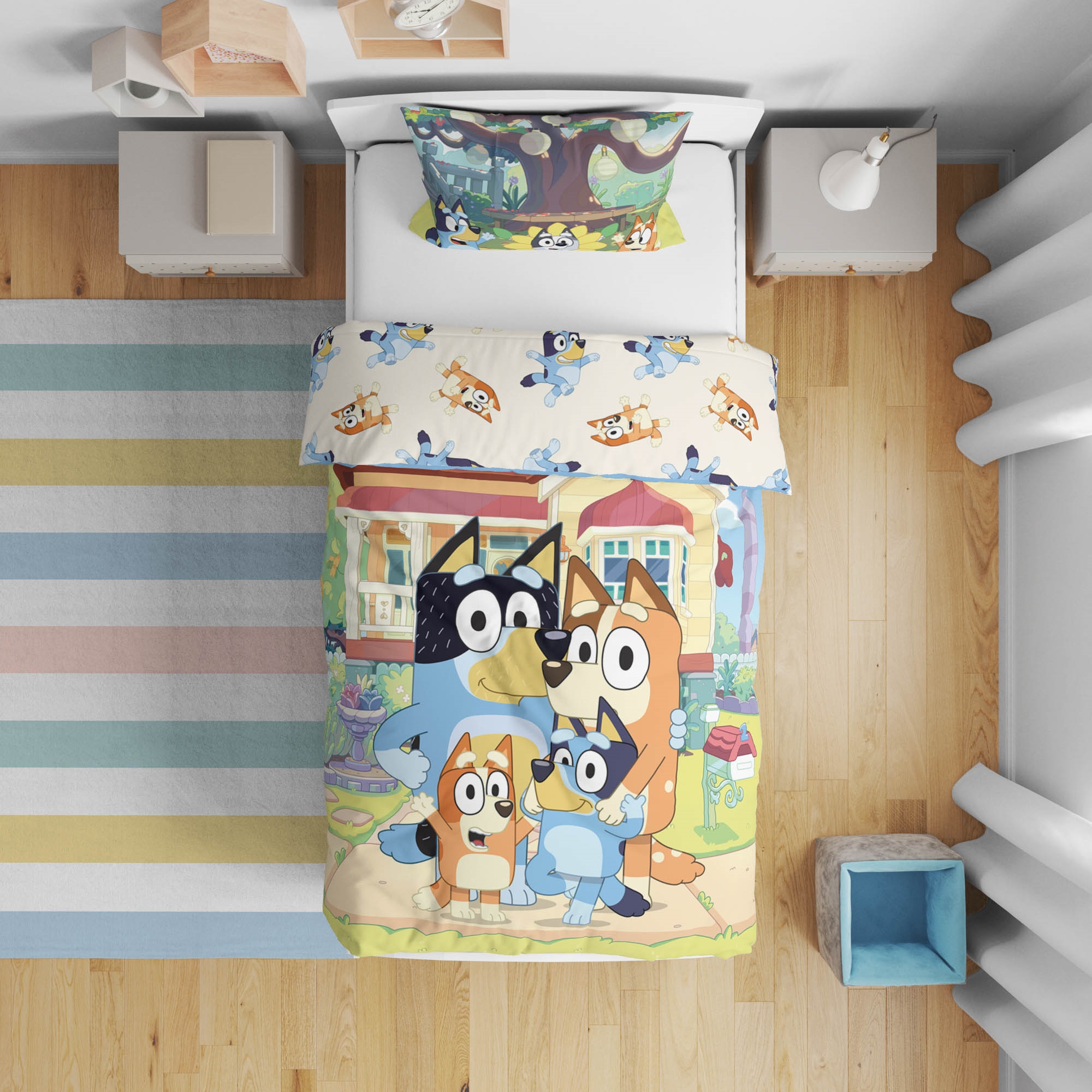 Forside »Sengetøy » Sengetøy til barn » Sengetøy til barn 140x200 cm Bluey sengetøy 140x200 cm - 100 % myk bomull - Dynetrekk med 2 i 1 design - 100 % bomull sengesett Spar43% Licens 699,00399,00NOKSpar 300,- På lager Trustpilot Antall Legg i kurv Se mer fra: Licens Artikkelnummer:21873-1 Les vår sengetøyguide Se vårt store utvalg av lagner Se vårt store utvalg av dyner 140x200 Har du spørsmål om produktet? Fri for helseskadelige stofferOEKO-TEX® sertifisert100 % myk bomull Dynetrekk: 140x200 cm Putetrekk: 60x63 cm Materiale: 100 % myk bomull Farge: Multi Motiv: Bluey Design: Vendbar - Forside med Bluey og familien, bakside med all-over print av Bluey og Bingo Lukking: Dynetrekk med knapper, putetrekk med overlapp Vask: 60° Tørketrommel: Ja Tåler stryking: Ja Sertifisering: STANDARD 100 by OEKO-TEX® (2018OK1545). Din garanti for at produktet er fri for helseskadelig kjemi. Sengesett i 100 % myk bomull, med Bluey og familien foran huset deres. Med lette og pustende bomullstråder gir dette sengesettet en myk overflate som gjør dynen behagelig for barnet å sove med. Et slitesterkt sengesett med høy pusteevne og absorberingsevne, som vil hjelpe med å gjøre leggetiden til en god opplevelse. Sengesett med den skjønne og nysgjerrige Bluey. Bluey er kjent fra TV-serien med samme navn og er en energisk og nysgjerrig valp som sammen med søsteren Bingo forvandler hverdagen til et ekte eventyr. Sengesettet er vendbart og har bilde av Bluey og familien på forsiden og små print av Bluey og Bingo på baksiden. Dette er en flott mulighet til å tilføre litt ekstra farge og moro på barnerommet. Sengetøyet er ikke bare fint, men også behagelig å sove med. Sengesettet er produsert i 100 % myk bomull som gjør settet slitesterkt og med høy pusteevne. Den rene bomullskvaliteten gir et lekkert og mykt sengesett som bidrar til å fremme sovekomfort for barnet. Bomullssengetøy kan vaskes på 60° i vaskemaskin, noe som også bidrar til å opprettholde et høyt hygienisk nivå. Sengetøyet er i tillegg OEKO-TEX sertifisert, som er din garanti for at settet er fritt for skadelig kjemi. Gå på jakt etter favorittene og mye mer i vårt store utvalg av tilbehør til barneuniverset For barnet bør sengen være et trygt sted, og alle elementene skal sammen skape myke og gode omgivelser for barnet å finne ro i. Bruk derfor gjerne barnets interesser for å skape et trygt soverom for barnet. Hos oss finner du et stort utvalg av tilbehør til sengen og barnerommet, fra lagner til dyner, puter, sengetøy og mye mer, og masse produkter med alle barnas favoritter på. Alt sammen elementer som kan bidra til å skape det rette sovemiljøet og rommet for ditt barn. Her kan du finne deilige og myke kvalitetslagner Tilbake til Sengetøy til barn 140x200 cm