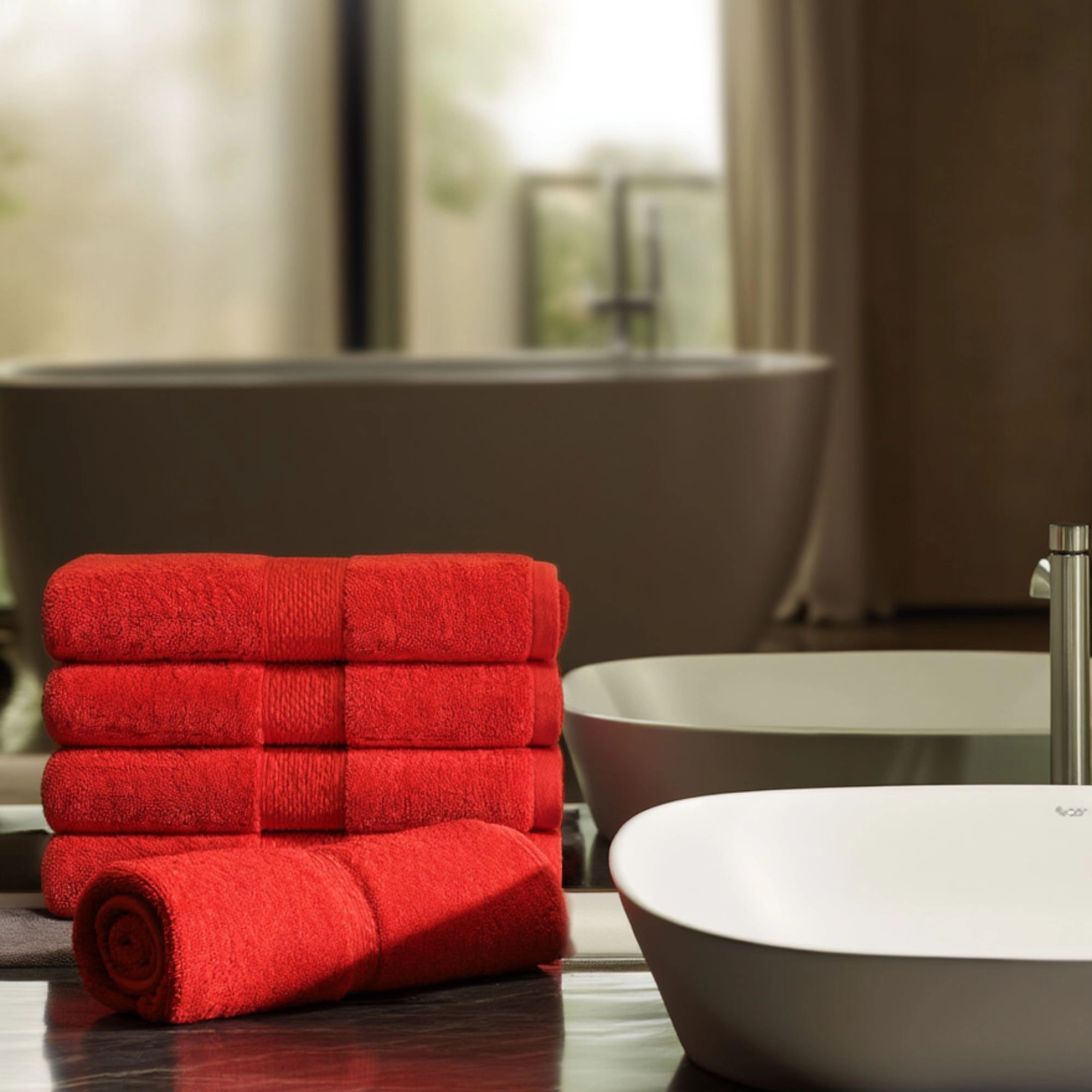 Bomull er et naturlig materiale som er kjent for sin mykhet, holdbarhet og gode sugeevne. Den tette kvaliteten på 450 g/m² gir håndklærne en luksuriøs følelse og sikrer samtidig god slitestyrke, slik at de kan brukes igjen og igjen i hverdagen.