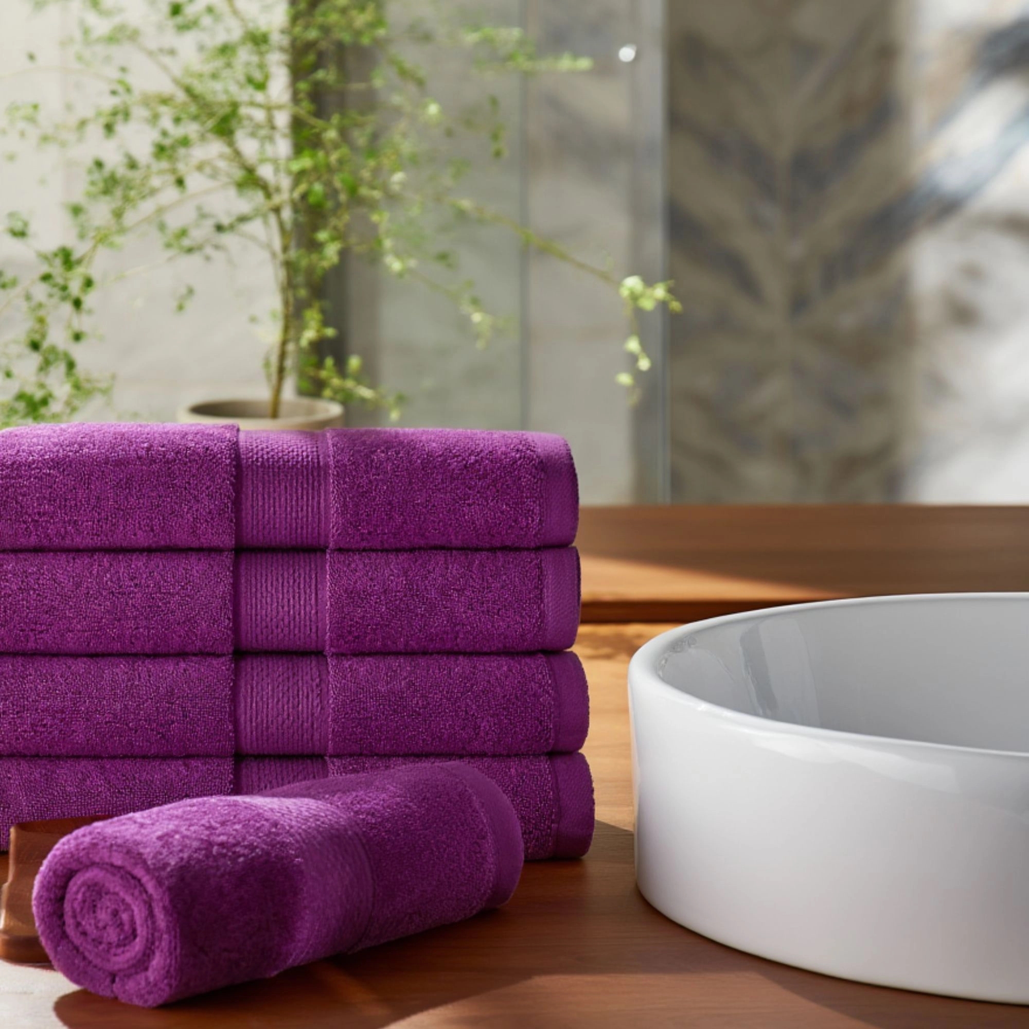 Bomull er et naturlig materiale som er kjent for mykhet, holdbarhet og god sugeevne. Den tette kvaliteten på 450 g/m² gir håndklærne en luksuriøs følelse og sikrer samtidig god slitestyrke, slik at de kan brukes om og om igjen i hverdagen.