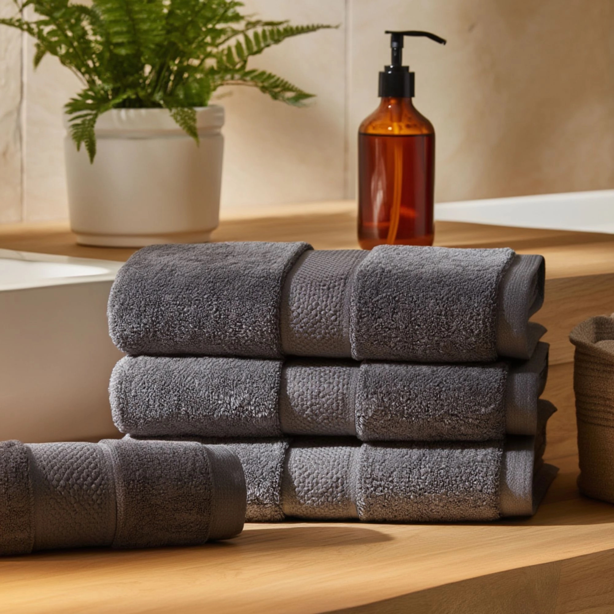 Bomull er et naturlig materiale som er kjent for sin mykhet, holdbarhet og gode absorberingsevne. Den tette kvaliteten på 450 g/m² gir håndklærne en luksuriøs følelse og sikrer samtidig god slitestyrke, så de kan brukes igjen og igjen i hverdagen.
