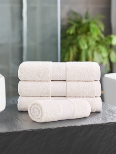 Bomull er et naturlig materiale som er kjent for sin mykhet, holdbarhet og gode sugeevne. Den tette kvaliteten på 450 g/m² gir håndkledet en luksuriøs følelse og sikrer samtidig god slitestyrke, slik at det kan brukes igjen og igjen i hverdagen.