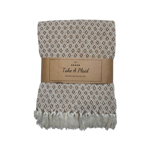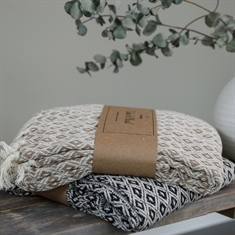 Bomullspledd i 100% resirkulert bomull - beige og hvit i 130x180 cm