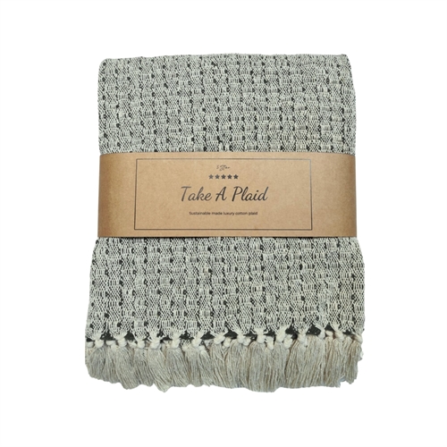 Skap en koselig og stilfull stemning i hjemmet med dette vakre bomullspleddet fra Take a plaid. Pleddets er laget av 100% resirkulert bomull, noe som gjør det både mykt, komfortabelt og til et mer bærekraftig valg.