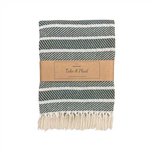 Bomullspledd i 100% resirkulert bomull - grønn og hvit i 130x180 cm