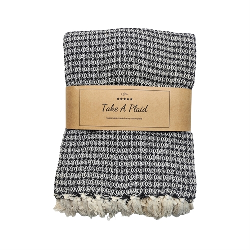 Bomullspledd i 100% resirkulert bomull - sort og hvit i 130x180 cm