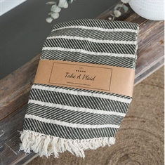 Bomullspledd i 100 % resirkulert bomull - sort og hvit i 130x180 cm