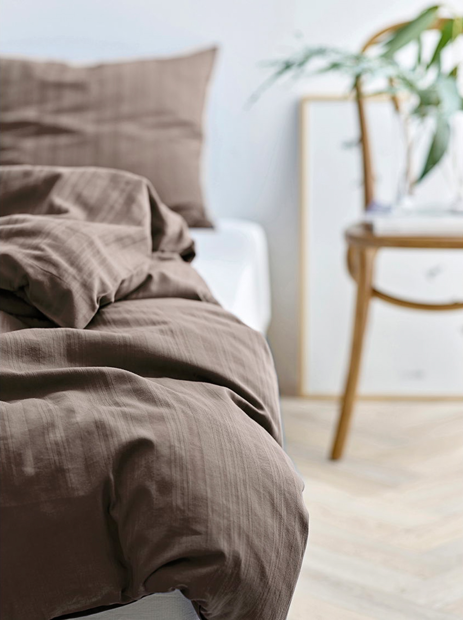 Drømmer du om hotellstemning på soverommet? Med dette luksuriøse damaskvevde sengetøyet fra Södahl får du en kombinasjon av elegant design, god komfort og høy kvalitet. Det stilrene stripete designet i en vakker brun farge gir et rolig og eksklusivt uttrykk som passer perfekt inn i et nordisk-inspirert hjem.