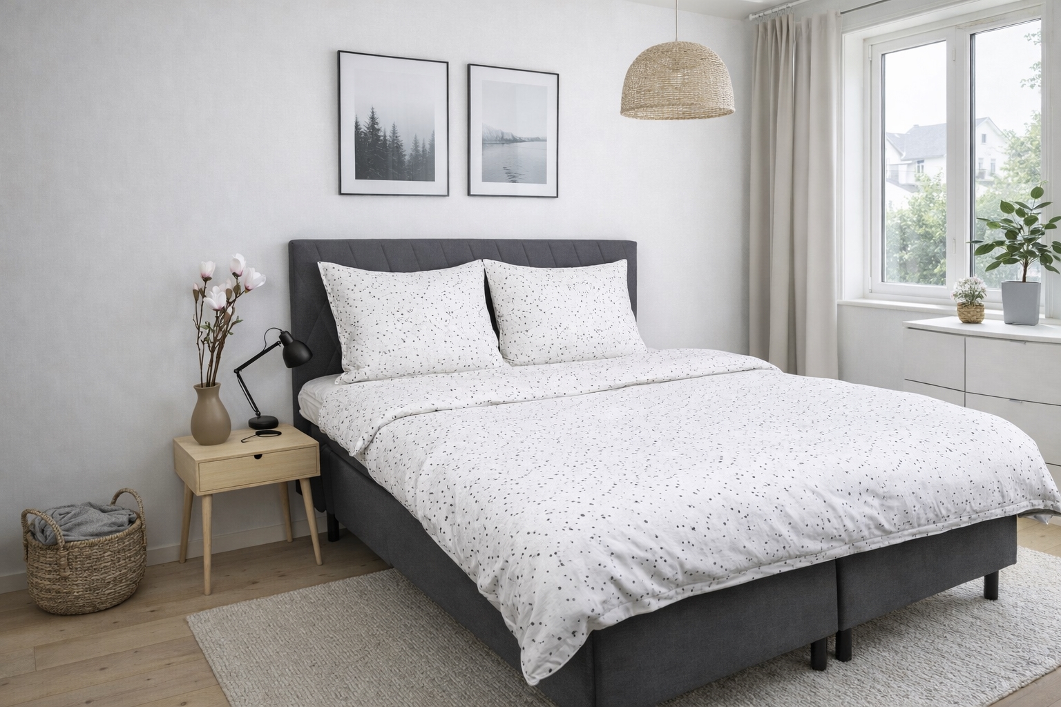 Det printede stjernebilde på sengetøyets overflate gir et pent uttrykk som holder seg vask etter vask. Stjerne-sengetøyet føles mykt mot huden og er egnet for daglig bruk hele året.
