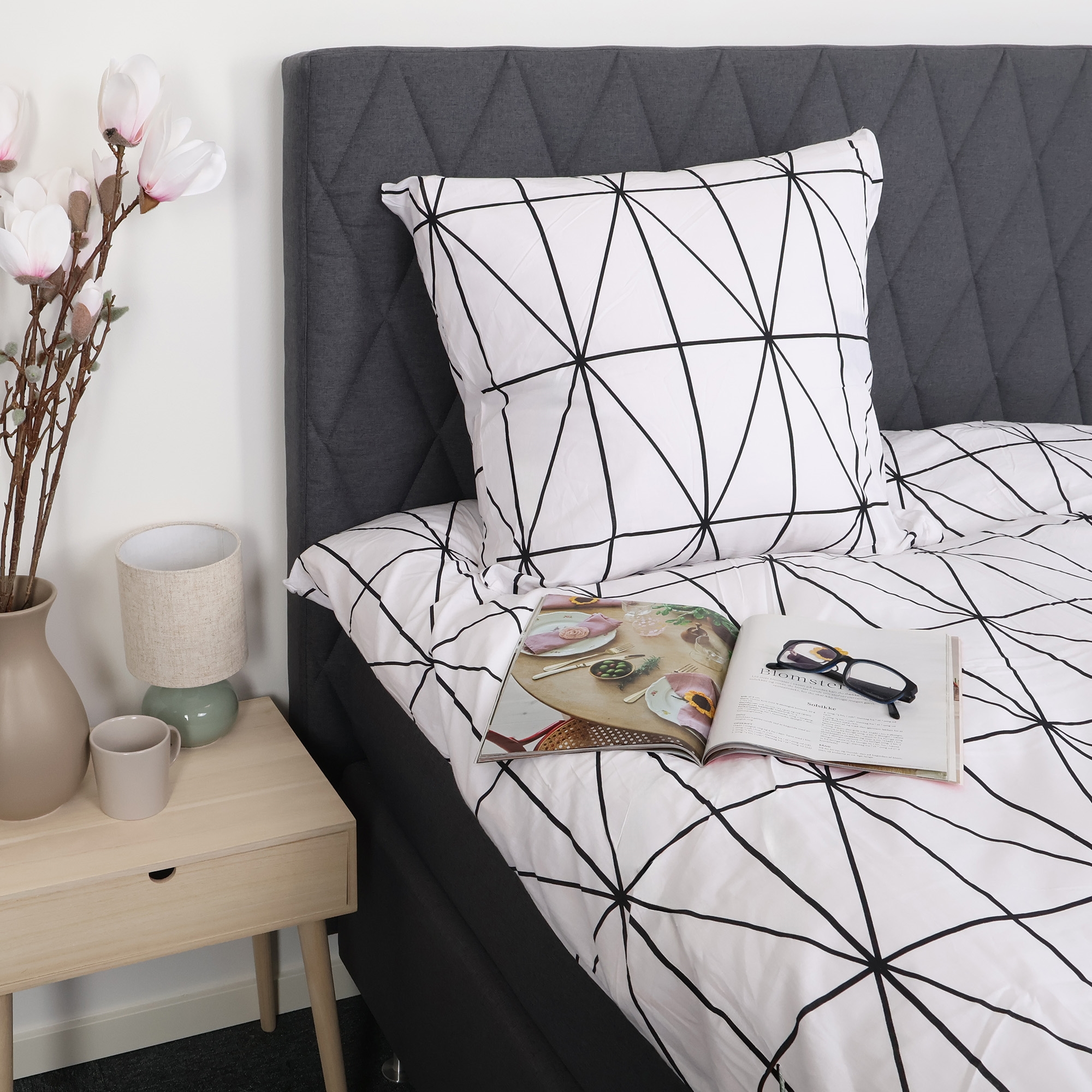 Sengetøysettet er laget i 100% myk bomull og vevd i en tett 170TC percale-kvalitet. Percale-vev betyr at stoffet er ekstra fint og tett vevd, noe som gir en glatt og pustende overflate. Denne vevingen gjør at bomullssengetøyet føles lett og behagelig mot huden - samtidig som det er slitesterkt og holder seg vask etter vask.