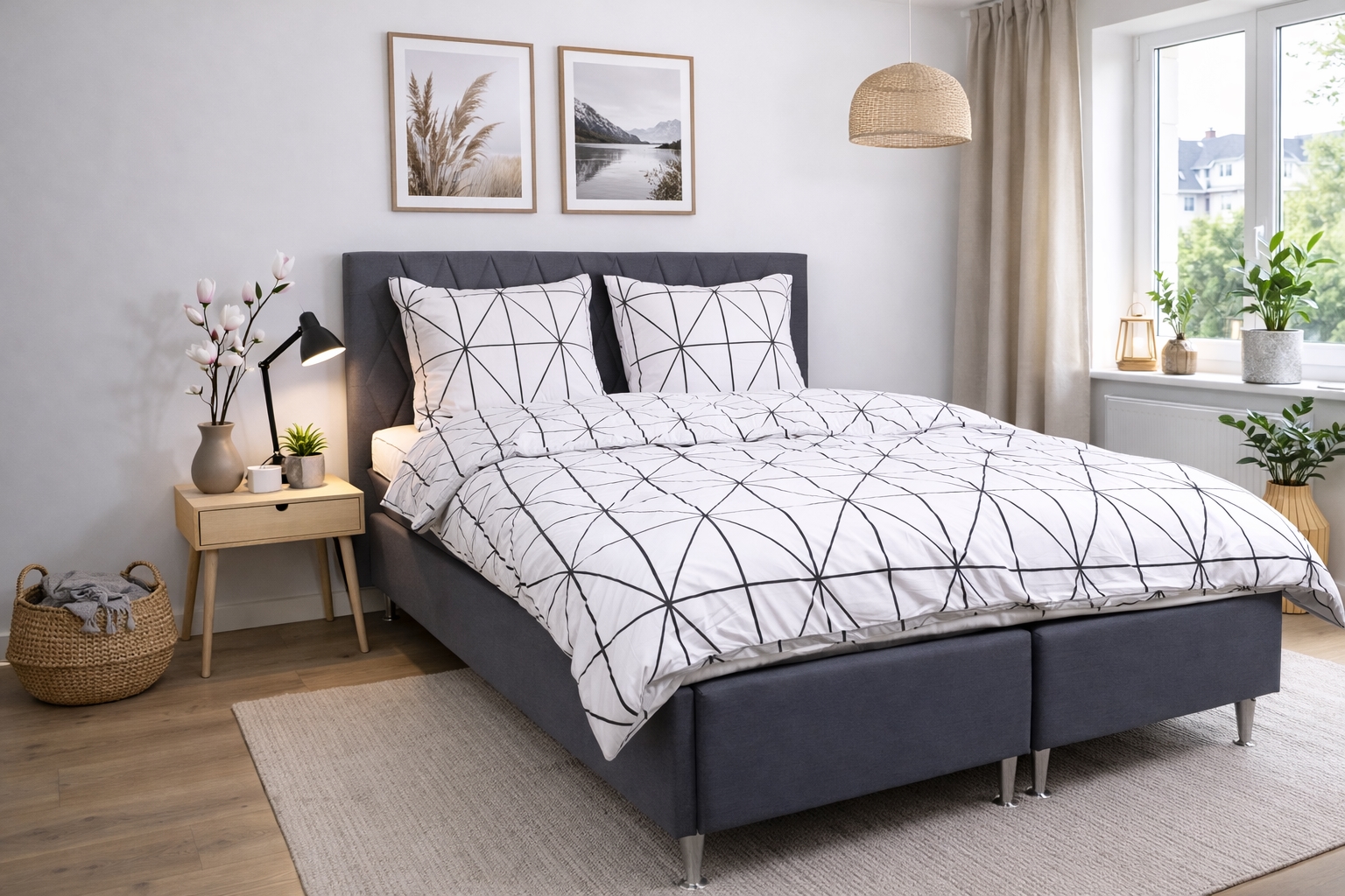 Gi soverommet et stilrent og rolig uttrykk med dette elegante dobbelt sengetøyet i bomull fra Nordstrand Home. Det klassiske harlekin-designet i hvitt skaper en harmonisk atmosfære og passer perfekt inn i både moderne og nordisk innredning.