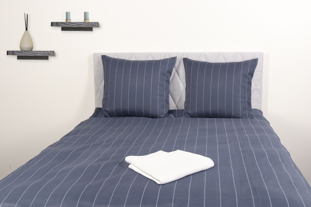 Forside »Sengetøy Dobbelt sengetøy 200x220 cm - Blåstripet sengesett - Borg Living dobbeltdynetrekk i polycotton Spar50% Borg Living 699,00349,00NOKSpar 350,- På lager Trustpilot Antall Legg i kurv Se mer fra: Borg Living Artikkelnummer:754-5 Les vår sengetøysguide Se vårt store utvalg av laken Se vårt store utvalg av dyner 200x220 Har du spørsmål om produktet? OEKO-TEX-sertifisertMykt og glansfullt sengetøyLukkes med glidelås Dynetrekk: 200x220 cm Putetrekk: 2 stk. á 60x63 cm Materiale: Polycotton - 55 % bomull - 45 % mikrofiber Veving: 200TC (trådantall = antall tråder per kvadrattomme) Farge: Blått sengesett Design: Stripete Merke: Borg Living Lukking: Dyne- og putetrekk med innvendig glidelås Vask: 40° Tørketrommel: Ja Kan strykes: Ja Sertifisering: STANDARD 100 by OEKO-TEX® (2018OK0658AITEX) Drømmer du om en behagelig natts søvn? Prøv Borg Living sitt polycotton sengetøy, et sengesett laget av en blanding av bomull og mikrofiber, som gir deg mange fordeler. Den enestående fargefastheten og slitestyrken fra bomull og mikrofiber sikrer at du får et elegant sengesett med lang levetid. Den utrolige mykheten og den vakre glansen i overflaten forbedrer soveopplevelsen din, mens sammensetningen gjør at settet har mindre tendens til å krølle. Polycotton sengetøy - lett, luftig og hurtigtørkende. Dyne- og putetrekk lukkes med innvendig glidelås for ekstra bekvemmelighet. Kjøp lett matchende putetrekk til dine ekstra puter her Frisk opp sovemiljøet ditt med et flott og lekkert sett sengetøy som dette. Benyt samtidig muligheten til å sikre deg maksimal sovekomfort ved å legge til et nytt, mykt laken av høy kvalitet. Du finner vårt store utvalg av kvalitetslaken her Det danske merket Borg Living produserer eksklusive serier av dyner, puter og boligtekstiler til hjemmet ditt. Merket ble etablert i 2013 og er kjent for sin innovasjon innen kvalitet og design. Borg Livings fantastiske produkter bidrar til en optimal og behagelig nattesøvn og pynter opp hjemmet ditt med moderne og lekkert boligtilbehør. Tilbake til Sengetøy