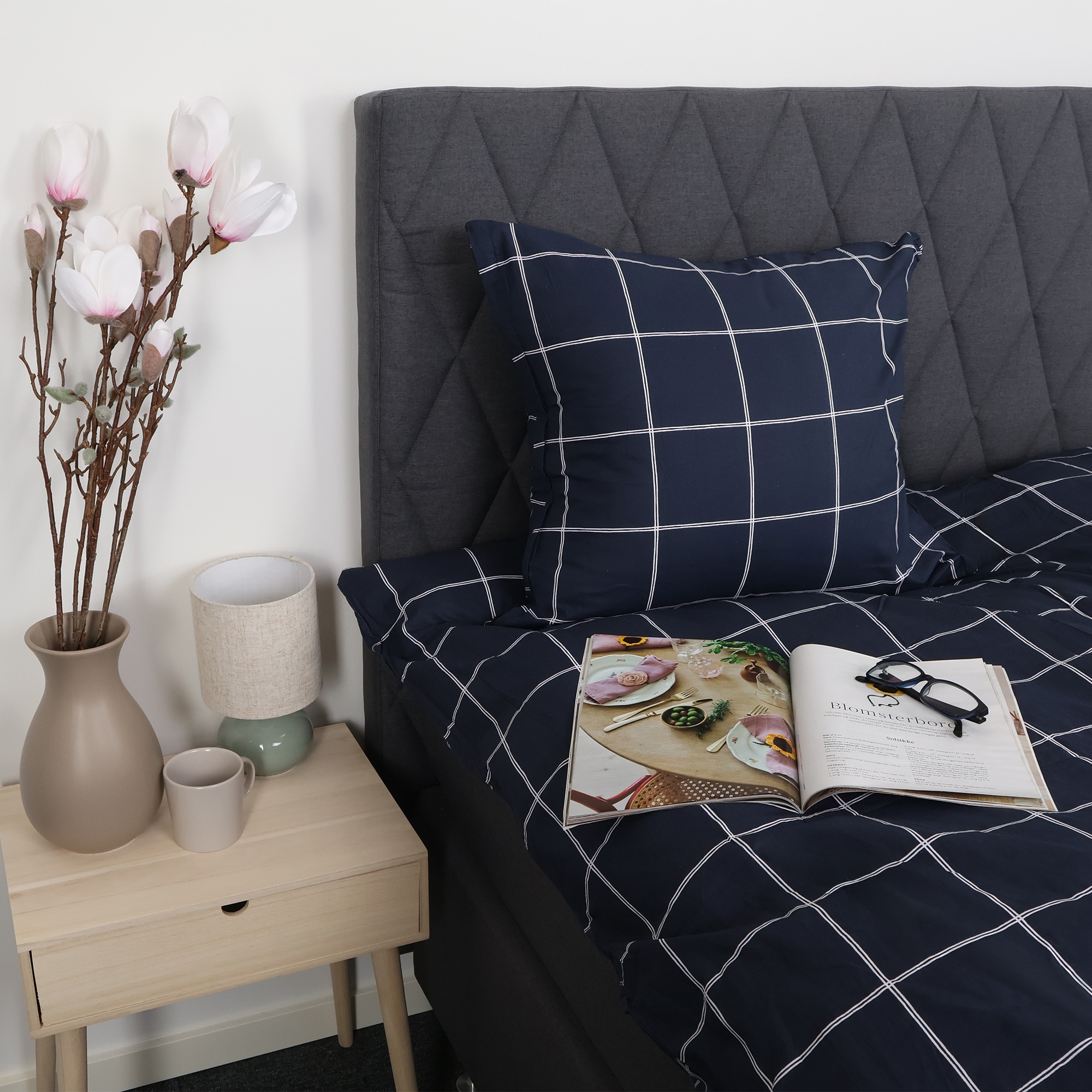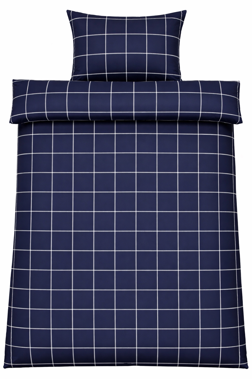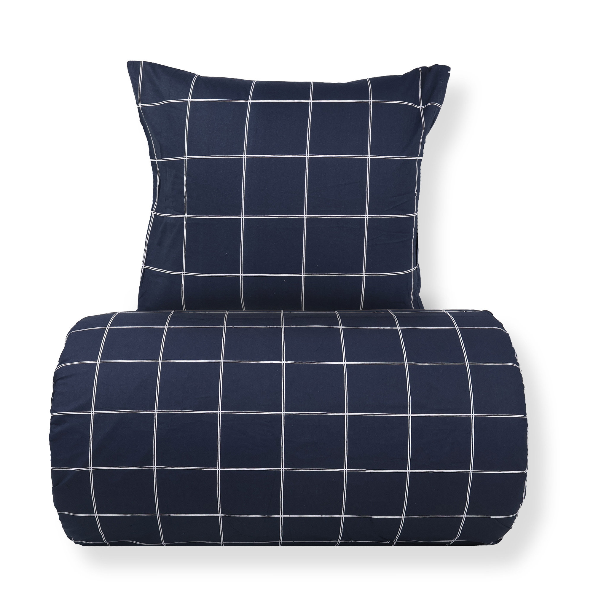 Dobbelt sengetøy i bomull med blått rutet design