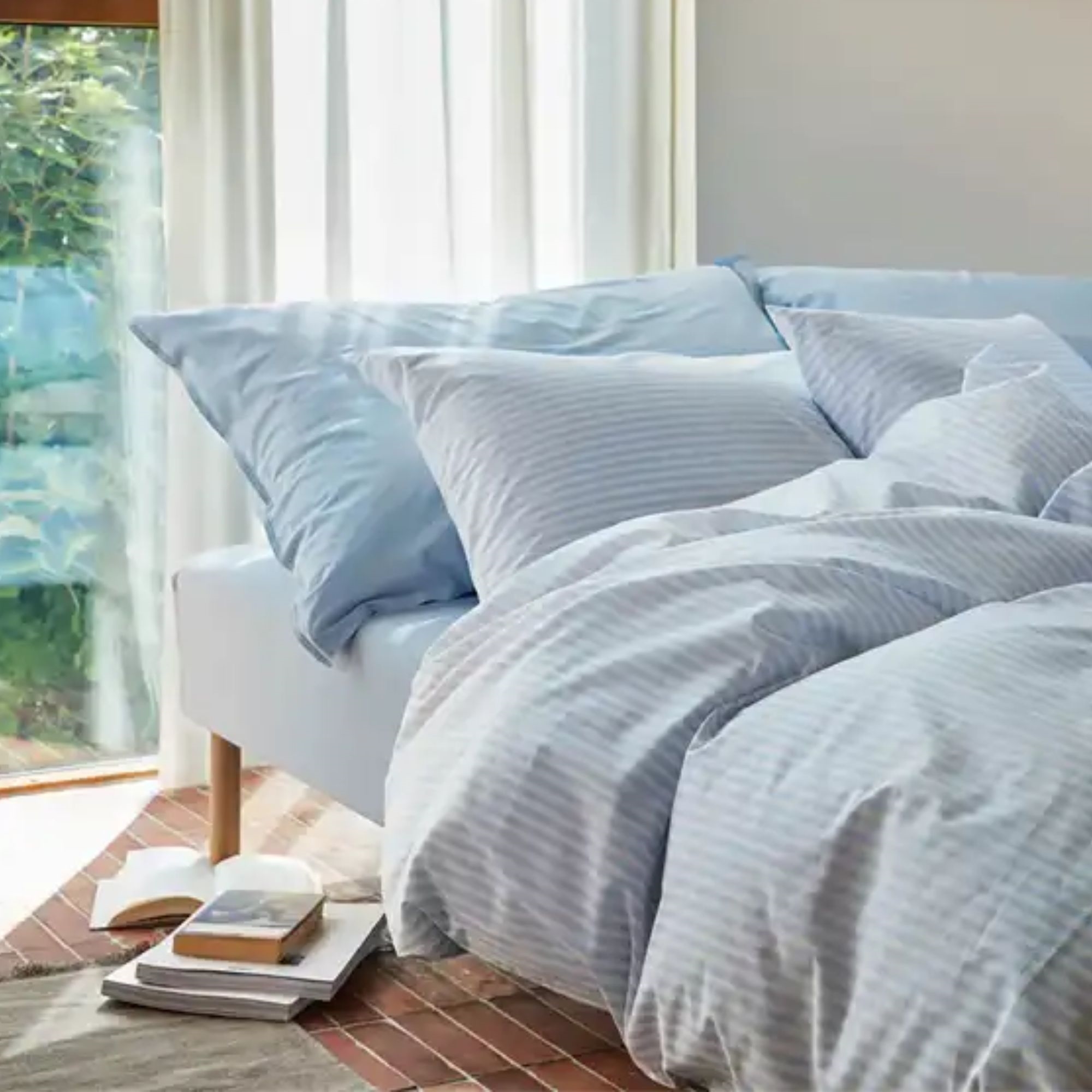 Forside »Sengetøy » Dobbelt sengetøy » Dobbelt sengetøy 200x220 cm Dobbelt sengetøy 200x220 cm - 100% bomull - Høie of Scandinavia - Tor Light Blue Spar15% Høie Of Scandinavia 1.299,001.099,00NOKSpar 200,- På lager Trustpilot Velg størrelse Velg variant Antall Legg i kurv Se mer fra: Høie Of Scandinavia Artikkelnummer:7965-5 Les vår sengetøyguide Se vårt store utvalg av laken Se vårt store utvalg av dyner 140x200 Har du spørsmål om produktet? Pustende materiale som fremmer en god nattesøvnMykt sengetøy som føles behagelig mot hudenOppnå en komfortabel nattesøvn gjennom hele natten Dynetrekk: 200x220 cm Putetrekk: 2 stk. á 60x63 cm Materiale: 100% ekstra fin bomull Veving: 144TC (Trådtetthet = antall tråder per kvadrattomme) Farge: Lyseblå Design: Tor Light Blue Merke: Høie of Scandinavia Lukking: Dynetrekk med glidelås, putetrekk med overlapp Vask: 60° Tørketromling: Ja Tåler stryking: Ja Sertifisering: EASY CARE-behandlet, som betyr at det ikke krøller etter vask. Sertifisering: STANDARD 100 by OEKO-TEX® (M27MV9610). Din garanti for at produktet er fritt for helsefarlig kjemi. Stripet sengetøy i ekstra fin bomull fra Høie Dette sengetøysettet fra Høie Of Scandinavia er laget av 100% ekstra fin bomull med en 144TC-veving, som gir en myk og glatt overflate med en diskret glans. Bomull er et naturlig materiale som føles mykt mot huden og samtidig er pustende, slik at kroppen kan kvitte seg med varme og fukt i løpet av natten. Det gjør at bomullssengetøy er egnet til bruk året rundt og til både varme og kjøligere netter. Bomull er kjent for å være robust og slitesterkt og kan tåle hyppig vask og daglig bruk uten at det går utover kvaliteten. Dobbelt sengetøy er det ideelle valget for deg som bruker dobbeldyne og ønsker et ensartet og rolig uttrykk i sengen. Dobbeltsengetøy gir god bevegelsesfrihet gjennom natten og er egnet både for par og for deg som ønsker ekstra plass og komfort. I dette settet medfølger et dynetrekk og to putetrekk. Sengetøyet er STANDARD 100 by OEKO-TEX®-sertifisert, som er din garanti for at produktet er fritt for helsefarlig kjemi. Det er også Easy Care-behandlet, som gir mindre krøll og bedre fasong etter vask. Easy Care gjør sengetøyet ekstra mykt og lett å stryke. Bomullssatin sengetøy er derfor et åpenbart valg for deg som ønsker ekstra komfort og en hotell-lignende følelse hjemme, men som fortsatt vil ha et naturmateriale som er lett å vedlikeholde og behagelig å sove i. Se alt vårt sengetøy i bomull her Høie Of Scandinavia Høie of Scandinavia er et velkjent skandinavisk tekstilmerke som siden 1850 har hatt en lang historie, særlig innen sengetøy, dyner og puter. Høie er kjent for høy kvalitet, tidløst design og komfort - det gjenspeiles i deres nordiske stil og funksjonalitet. Høie kombinerer tradisjonelt håndverk med moderne produksjon og materialer for å skape produkter som både er behagelige å sove i og holdbare i hverdagen. Se hele utvalget av Høie her Tilbake til Dobbelt sengetøy 200x220 cm