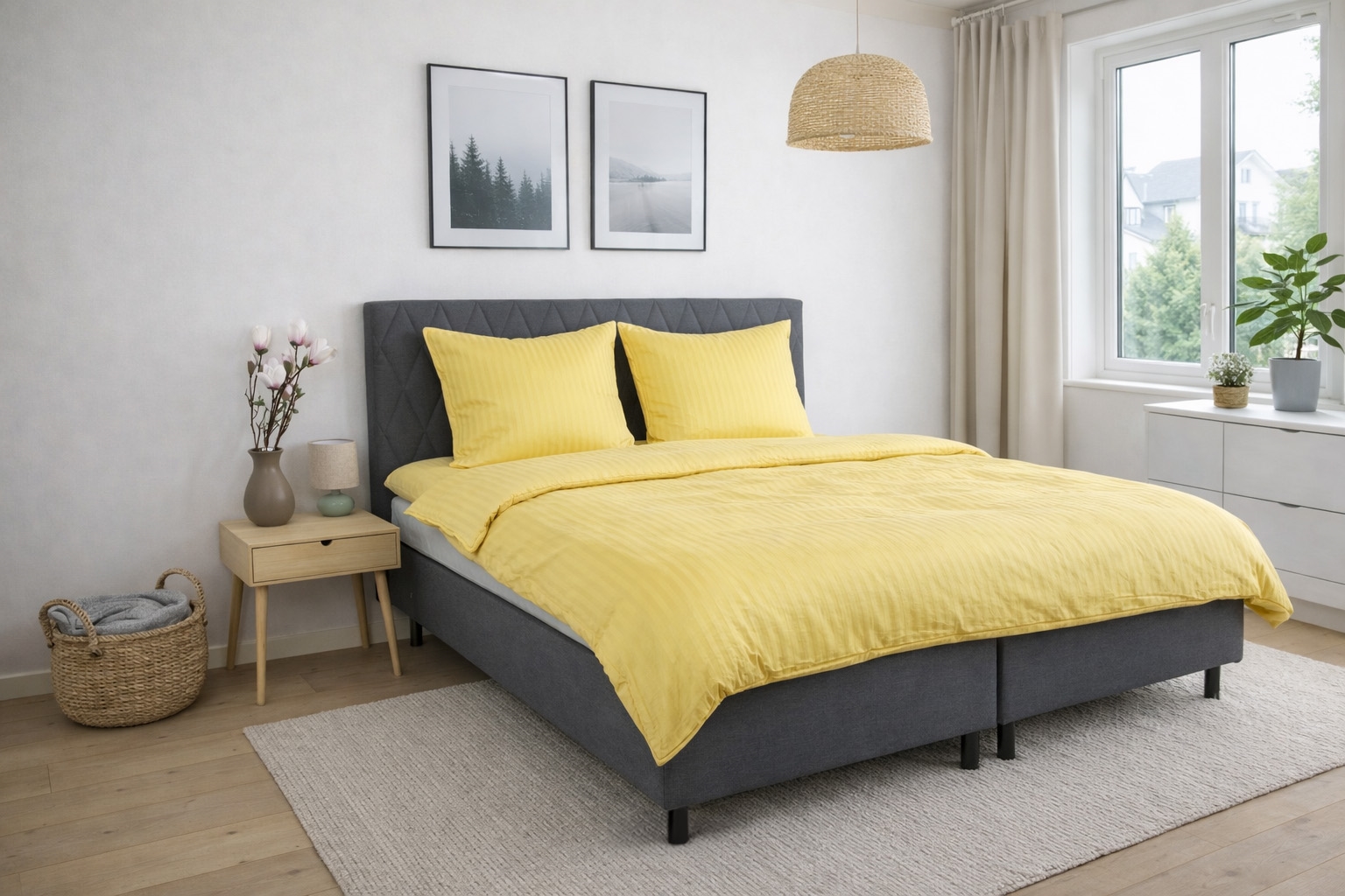 Skap et elegant og eksklusivt uttrykk på soverommet med dette gule stripete sengetøyet i 100 % bomullssatin. Sengetøyet kombinerer klassisk design med høy komfort og er laget for deg som ønsker både luksus og funksjonalitet i hverdagen.