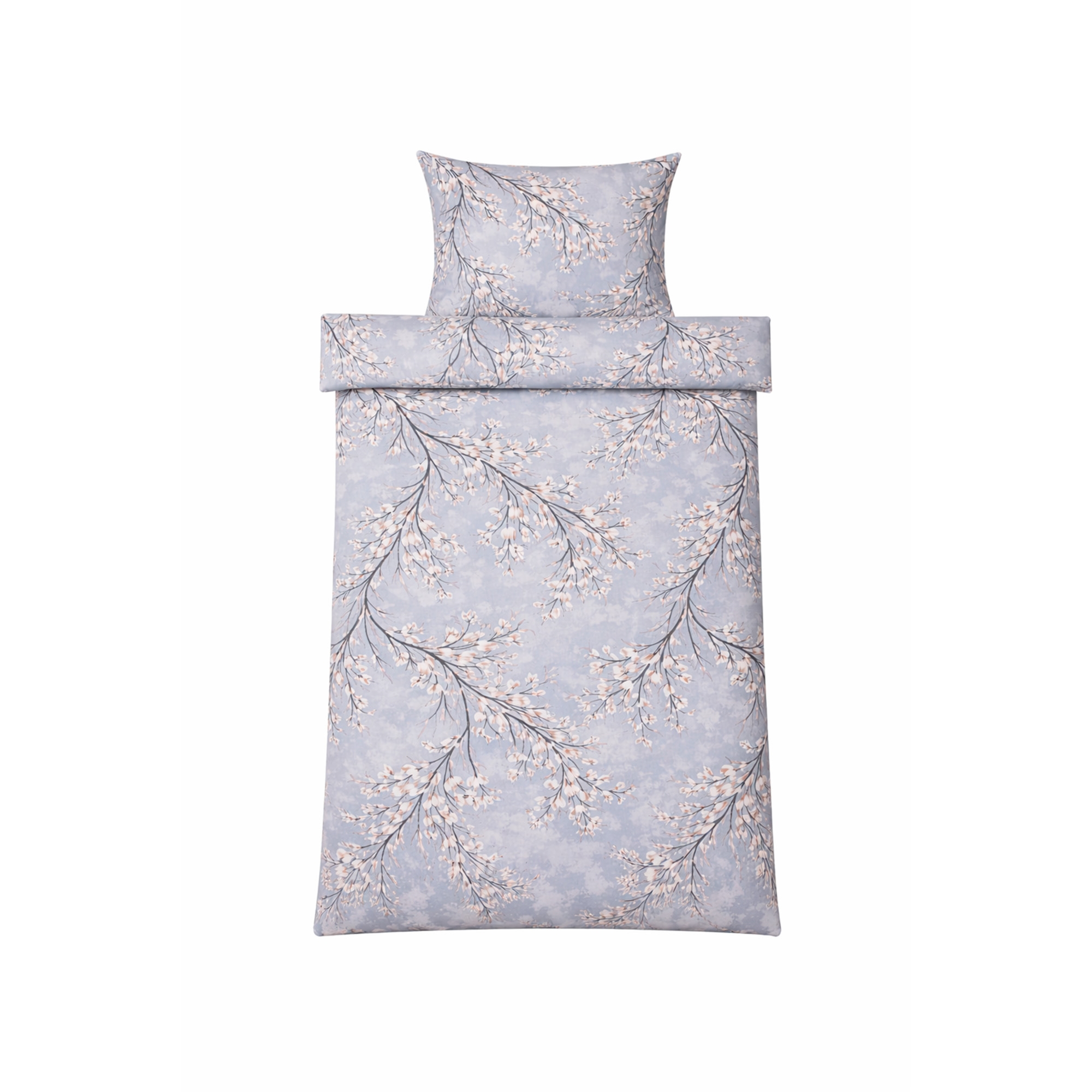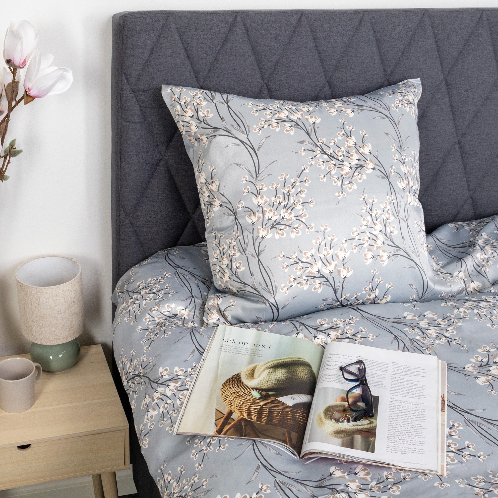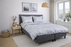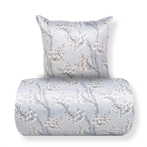 Det vendbare designet gir to looks i ett sengesett. Forsiden har et elegant blomsterprint i varme lyseblå nyanser, mens baksiden er ensfarget og mer dempet. En fleksibel løsning som gjør det enkelt å variere stilen på soverommet.