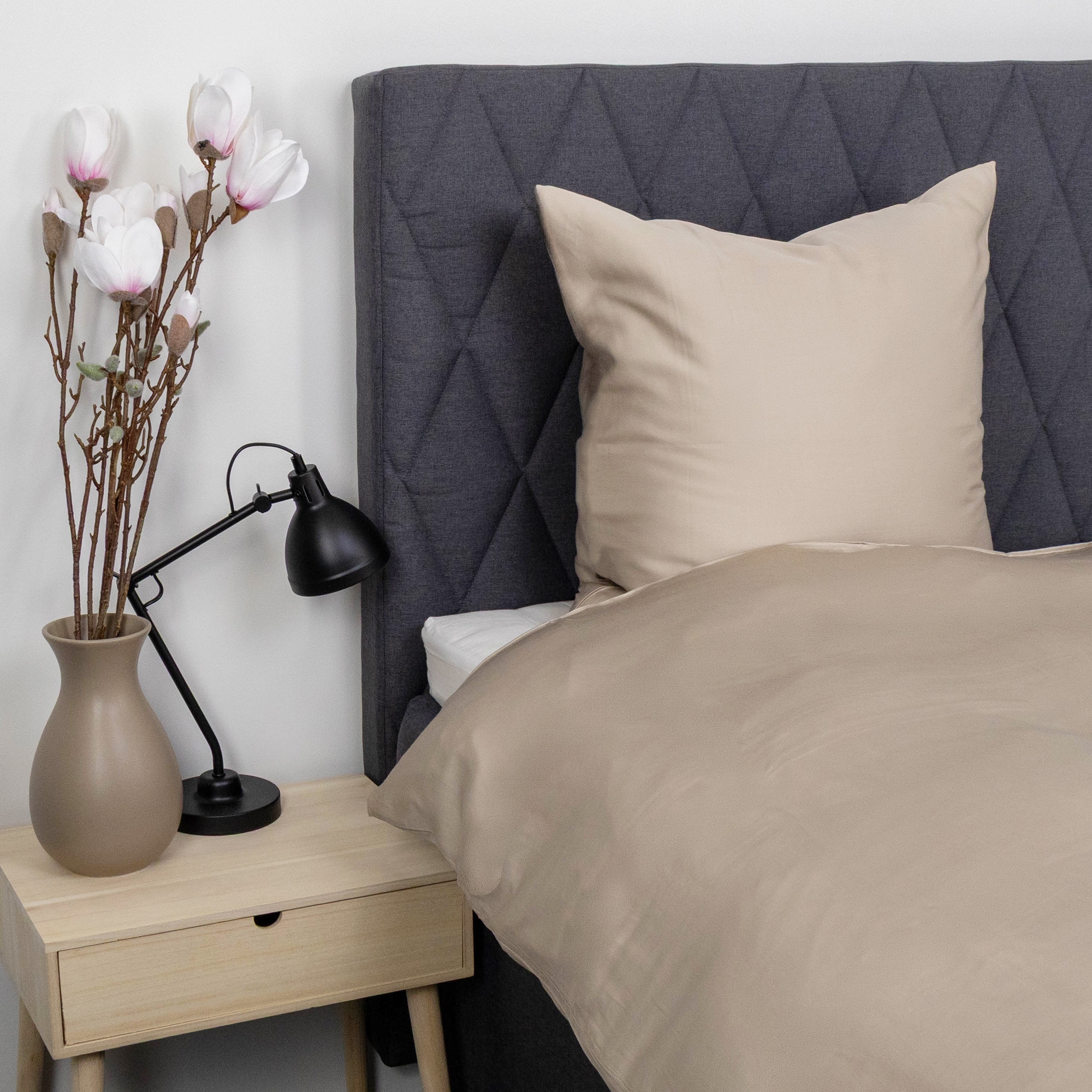 Et blankt, tettvevd og utrolig mykt sett sengetøy av bambus i moderne, tidløse og rolige farger som passer perfekt inn i enhver innredning. Det myke sengesettet laget av 100% naturlig bambus ser ikke bare bra ut, men er også en sann nytelse å sove med. Sengetøy av bambus er ekstra pustende, absorberende, temperaturregulerende og ikke minst svettetransporterende, og kan derfor enkelt oppfylle dine krav til en god og optimal natts søvn. Bambus har antibakterielle egenskaper og hjelper til med å bekjempe bakterier. Dette gjør sengetøyet egnet for allergikere og personer med sensitiv hud, da bambusens naturlige egenskaper gir en beroligende atmosfære der støvmidd ikke kan trives.