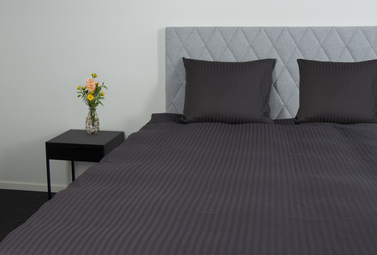 Dobbelt sengetøy i 100 % bomullssateng - 200x220 cm - Mørkegrått ensfarget sengetøy - Borg living