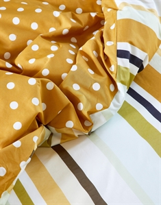 Forside »Sengetøy » Dobbelt sengetøy » Dobbelt sengetøy 200x200 cm Dobbeltdyne sengetøy 200x200 cm - Feija - Vendbart sengesett - 100% bomull - Essenza sengetøy 2 x putetrekkSpar36% Essenza 2.349,001.499,00NOKSpar 850,- Få på lager Trustpilot Antall Legg i kurv Se mer fra: Essenza Artikkelnummer:8328-4 Les vår sengetøyguide Se vårt store utvalg av laken Se vårt store utvalg av dyner 200x200 Har du spørsmål om produktet? Myk og skinnende100% bomullEssenza - Feija Dynetrekk: 200x200 cm Putetrekk: 2 stk. á 60x63 cm Materiale: 100% bomull Veving: 200TC (trådantall = antall tråder per kvadrattomme) Farge: Gul og hvit Design: 2 i 1 - prikker og striper Merke: Essenza Lukning: Dyne lukkes med knapper og putetrekk med overlapp Vask: 60° Tørketrommel: Ja Tåler stryking: Ja Sertifisering: STANDARD 100 by OEKO-TEX® (0906030) Sengetøy fra Essenza er laget av 100% luksuriøs bomull. Dette gir sengesettet ekstra mykhet og svært god slitestyrke. Sengesettet er dobbeltsidig, altså vendbart, med forskjellige mønstre eller farger på hver side. Dynen lukkes med knapper og putetrekk med overlapp. Kjøp lette putetrekk til ekstraputene dine her Essenza Home har designet og produsert stilige hjemtekstiler i nesten 60 år. Selskapet ble grunnlagt i 1961 av Mr. Van Es. ESSENZA er kjent for sine glade og friske design i et bredt utvalg. Frisk opp sengen og soverommet med et vakkert og deilig sett med sengetøy som dette. Bruk også sjansen til å sikre maksimal sovekomfort ved å legge til et mykt, nytt laken av høy kvalitet. Du finner vårt store utvalg av laken her Tilbake til Dobbelt sengetøy 200x200 cm