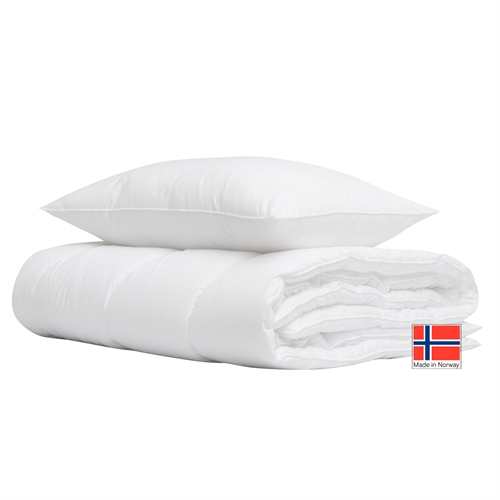 Forside »Dyner » Enkeltdyner » Ekstra lang dyne 140x220 cm Dyne- og putesett - Fiberdyne 140x220 cm & medium fiberpute 60x63 cm - Komplett - Høie of Scandinavia Dyne / Putesett Spar14% Høie Of Scandinavia 1.399,001.199,00NOKSpar 200,- På lager Trustpilot Antall Legg i kurv Se mer fra: Høie Of Scandinavia Artikkelnummer:3063-26 Les vår dyneguide Les om vedlikehold av dyner og puter Se vårt store utvalg av puter Har du spørsmål om produktet? Dyne- og putesettAllergivennligHøie of Scandinavia Størrelse: Dyne: 140x220 cm Pute: 60x63 cm Fyllvekt: Dyne: 990 g Pute: 550 g Type: Dyne: Helårsdyne Pute: Middels høyde Bolster: 65/35 % polyester og bomull Fyll: Dyne: Hulfiberfyll Pute: Kulefiber Konstruksjon på dyne: Kanalsydd Produsert i: Norge Vask: 60° Tørketrommel: Ja Leveres i en praktisk oppbevaringspose Sertifisering: STANDARD 100 by OEKO-TEX® (ö 04-1332) Dyne- og putesettet fra Høie, er til deg som ønsker et enkelt, men kvalitetsfylt alternativ til sommerhuset, på båten, til overnattingsgjester eller barnets første dyne sett. Settet består av en helårsdyne i størrelsen 140x220 cm og vanlig pute størrelse. Puten har middels høyde og føles deilig myk og behagelig å sove med. Det er derfor veldig enkelt å finne et lekkert sengesett som passer til dyne- og putesettet. Høies dyne- og putesett er produsert i Norge og fylt med deilig mykt og allergivennlig fiberfyll. Dynen og putens bolster er produsert med en kombinasjon av polyester og bomull, som gjør dem pustende, hurtigtørkende og transporterer lett bort fuktigheten. Se vårt store utvalg av sengetøy i 140x220 cm her Dynesettet fra Høie of Scandinavia er enkelt å vedlikeholde og kan vaskes etter anvisningene på settet. Du kan med fordel nøye deg med å lufte settet etter bruk, for eksempel annenhver gang. Dette er praktisk hvis du ønsker å bruke settet i fritidsboligen, da det ikke trenger å vaskes hver gang. I tillegg er det utrolig enkelt å transportere i den praktiske oppbevaringsvesken som følger med. Høie er et skandinavisk merke som står for tradisjon kombinert med innovasjon. Selskapet har eksistert siden 1850 og har gjennom årene vært med på å forme og utvikle skandinaviske tekstiler og design. Høie er et av de mest anerkjente merkene innen sengetøy, dyner, puter og pledd. Alle produktene har ulike krav til egenskaper, farge og design - men de har alle den gode og anerkjente høye kvaliteten! Tilbake til Ekstra lang dyne 140x220 cm