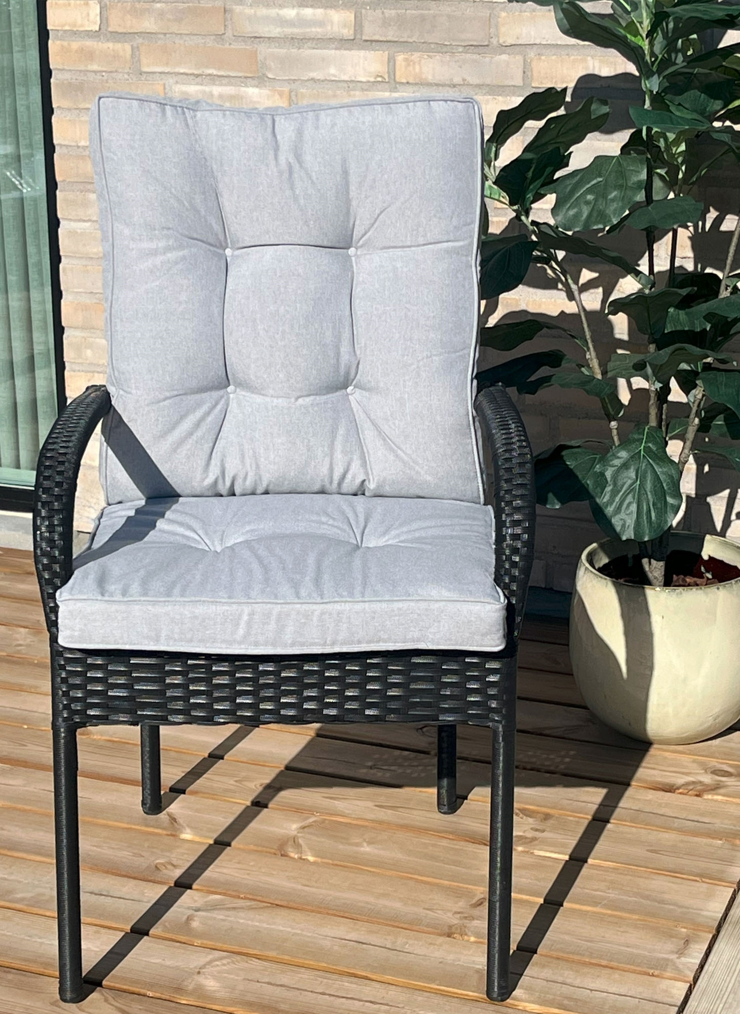Forside »Summer Sale » Hageputer » Hageputer » Alle hageputer Eksklusiv hagepute pakke til hagestol 4 stk. - Ekstra myke 7 cm tykke luksus puter - Moderne button design grå stolputer - UV beskyttet Nordstrand Home puter 4 stk. Nordstrand Home Knallpris:2.999,00NOK På lager Trustpilot Antall Legg i kurv Se mer fra: Nordstrand Home Artikkelnummer:HA-HO-301-4 Har du spørsmål om produktet? Luksuriøse puterHøy komfortUV beskyttet & vannavvisende Type: 4 stk. Eksklusiv hagepute til hagestol Ryghøyde: 55 cm Sittedybde: 50 cm (bredde: 50 cm) Tykkelse: 7 cm Farge: Lys grå Fyll: PU-Skum i sete & mykt skum ryggstøtte Trekk: UV-resistent polyester Vannavvisende: Ja Vask: Rengjøres med fuktig klut Merke: Nordstrand Home Modell: Eksklusive Sertifisering: STANDARD 100 by OEKO-TEX® (SH025 165885 TESTEX). Din garanti for at produktet er fri for helseskadelig kjemi. Eksklusiv og tykke hageputer til hagestol, med luksus komfort og moderne button cushion design. Puter til dine hagestoler som gir absolutt maks komfort, med en ideell balanse av fast PU skum i setet, mykt skumfyll og god støtte i ryggen. Kombiner en tur i hagen med eksklusiv komfort, og nyt de lange sommerdagene og kveldene litt ekstra, med stolputer som disse. Det flotte designet føles ikke bare deilig, men er også en fryd for øyet i dine hagemøbler. Gjør utendørs innredningen komplett med en hagepute pakke med 4 stk. hageputer. Ultimativ lekre hageputer, som passer perfekt til alle vanlige hagestoler - også en hagestol med lav stolrygg, kafésettet på balkongen eller en lav loungestol er putene ofte brukt i. Ønsker du at hagemøblene dine er flotte, stilfulle, myke og inviterer til mange hyggelige timer utendørs på terrassen eller i hagen, så går du ikke feil med Eksklusive hageputene. Den tykke skumkjernen gir puten maks komfort - i tillegg er puten produsert med slitesterke materialer, som også er beskyttet mot vind, vær og ikke minst solens stråler. De eksklusive hageputene er kledd med et standard strukturvevet polyester trekk, som er spesielt slitesterkt og UV-resistent. Dette betyr at putene bedre kan motstå skiftende værforhold - og spesielt solens stråler, uten å falme i farge eller miste form. Putene er også overflatebehandlet, så den er vann- og smussavvisende, samt har hurtigtørkende fyll og trekk. Stolputene er derfor enkle å vedlikeholde, da de lett kan rengjøres med en fuktig klut. Puten festes med justerbar spennerem bakom stolryggen, samt snorer i hver side. Synk ned i disse lekre hageputene og nyt den unike komforten - en hagepute til din hagestol som ikke går på kompromis med materialer eller moderne design. Putene setter final touches på dine hagemøbler og gjør selv en vanlig stablestol til en flott og myk fornøyelse. Med Nordstrand Home er du sikret boligtekstiler i dansk design - i nordisk stil. Nordstrand Home legger stor vekt på følelsen av velvære i et flott, men samtidig, avslappende miljø. Med Nordstrand Home trenger du ikke gå på kompromis, du finner alltid produkter i klassiske og moteriktige farger. Nordstrand Home – Så føler du deg hjemme! Tilbake til Alle hageputer