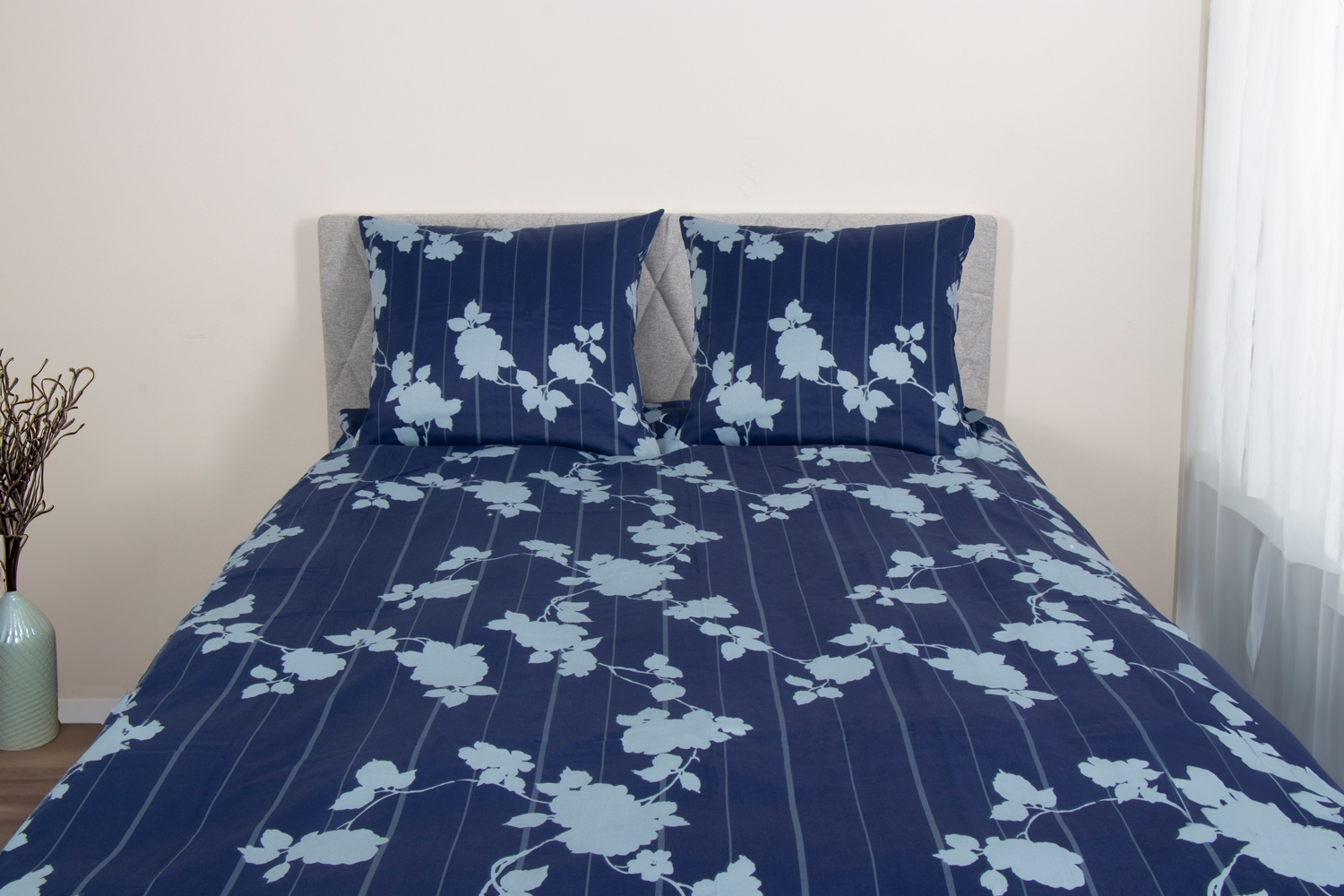 Forside »Sengetøy Ekstra mykt sengetøy 140x200 cm - 100% bomullssatin - Blomstret blått sengetøysett - 300 TC sengetøy fra By Borg Spar57% By Borg 1.599,00685,00NOKSpar 914,- På lager Trustpilot Antall Legg i kurv Se mer fra: By Borg Artikkelnummer:805-1 Les vår sengetøyguide Se vårt store utvalg av laken Se vårt store utvalg av dyner 140x200 Har du spørsmål om produktet? Ekstra fin & tett vevning - 300 TCLuksuriøs mykhetHøy pusteevne & komfort Dynebetræk: 140x200 cm Putebetræk: 1 stk. á 60x63 cm Materiale: 100% bomullssatin Vevning: Ekstra fin 300 TC vevning (Thread count = antall tråder pr. kvadrattomme) Farge: Blå med blomster og striper Design: Rosenbloom Brand: Excellent By Borg Lukning: Dynetrekk og putetrekk med innvendig skjult glidelås Vask: 60° Tørketromling: Ja Tåler stryking: Ja Sertifisering: STANDARD 100 by OEKO-TEX® (M24LKFHY1 Hohenstein HTTI). Din garanti for at produktet er fri for helseskadelige stoffer. Luksuriøst 100% bomullssatin sengetøy, med et klassisk stripet design i rolige farger. Et sengetøysett med fokus på høy komfort, pusteevne og en deilig mykhet. Som kombinerer kvalitetsmaterialer med et stilrent design, og sammen skaper et sengetøy som gir ditt sovemiljø en følelse av hjemlig forkjælelse. Sengetøyet er laget i 100% bomullssatin, med en ekstra tett og fin vevning på 300 TC. Denne tette TC gir sengetøysettet en helt unik og luksuriøs mykhet. Kjennetegnet ved denne typen sengetøy er nettopp den ekstraordinære mykheten og følelsen av det kraftige materialet. Den fine bomullssatinen som er vevd av ekstra fine garn og har en helt tett vevning på hele 300 TC, noe som indikerer at det er ikke mindre enn 300 fine tråder vevd sammen pr. kvadrattomme - og jo høyere TC, desto tettere er vevningen. Kombinasjonen av den høye TC, fine bomullssatintråder og vevemetodens art, gjør at sengetøysettet ikke bare er utrolig deilig å sove med, men også har en høy slitestyrke, pusteevne og absorberingsevne. Sengetøysettet er 100% gjennomfarget, noe som betyr at fargen under produksjonen bindes i bomullsfibrene og gir sengetøyet en høy fargeektehet. Dette gjør at materialets farge og design bevares selv etter gjentatte vask. Sengetøysettet lukkes med skjult glidelås i både dyne og putetrekk. Kjøp lett putebetræk til dine ekstra puter her Benytt samtidig muligheten for å sikre deg økt sovekomfort, ved å legge til et nytt mykt laken av høy kvalitet. Du finner vårt store sortiment av kvalitetslaken her Excellent By Borg har med deres dansk produserte dyner og puter, samt fantastiske sengetøy fokus på komfort og søvnoptimering. De vet at kilden til en god hverdag og høy livskvalitet er forbundet med en optimal og god natts søvn. Derfor har de gjort det enkelt for deg å finne de rette sovekomponentene, som passer til nettopp ditt behov. Produktene fra Excellent By Borg gir deg svært høy kvalitet samt en grundig sertifisering. Tilbake til Sengetøy