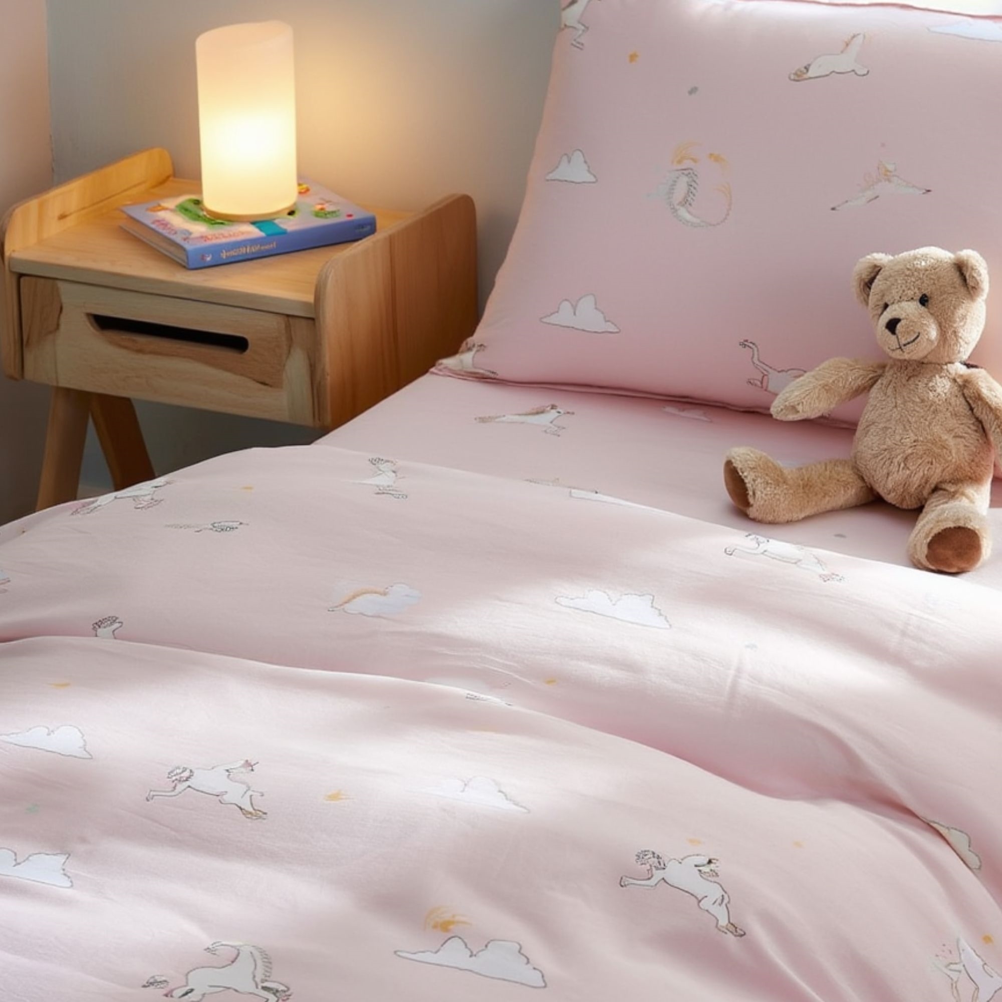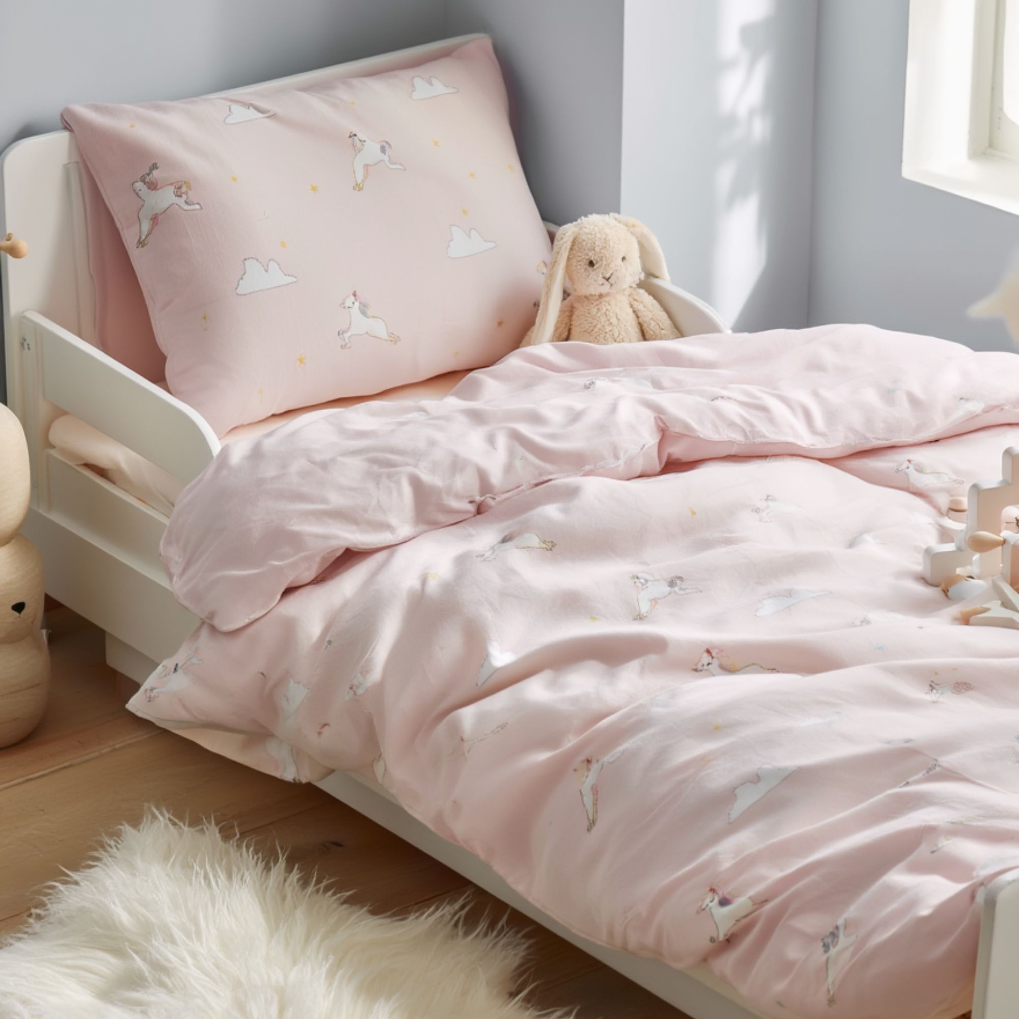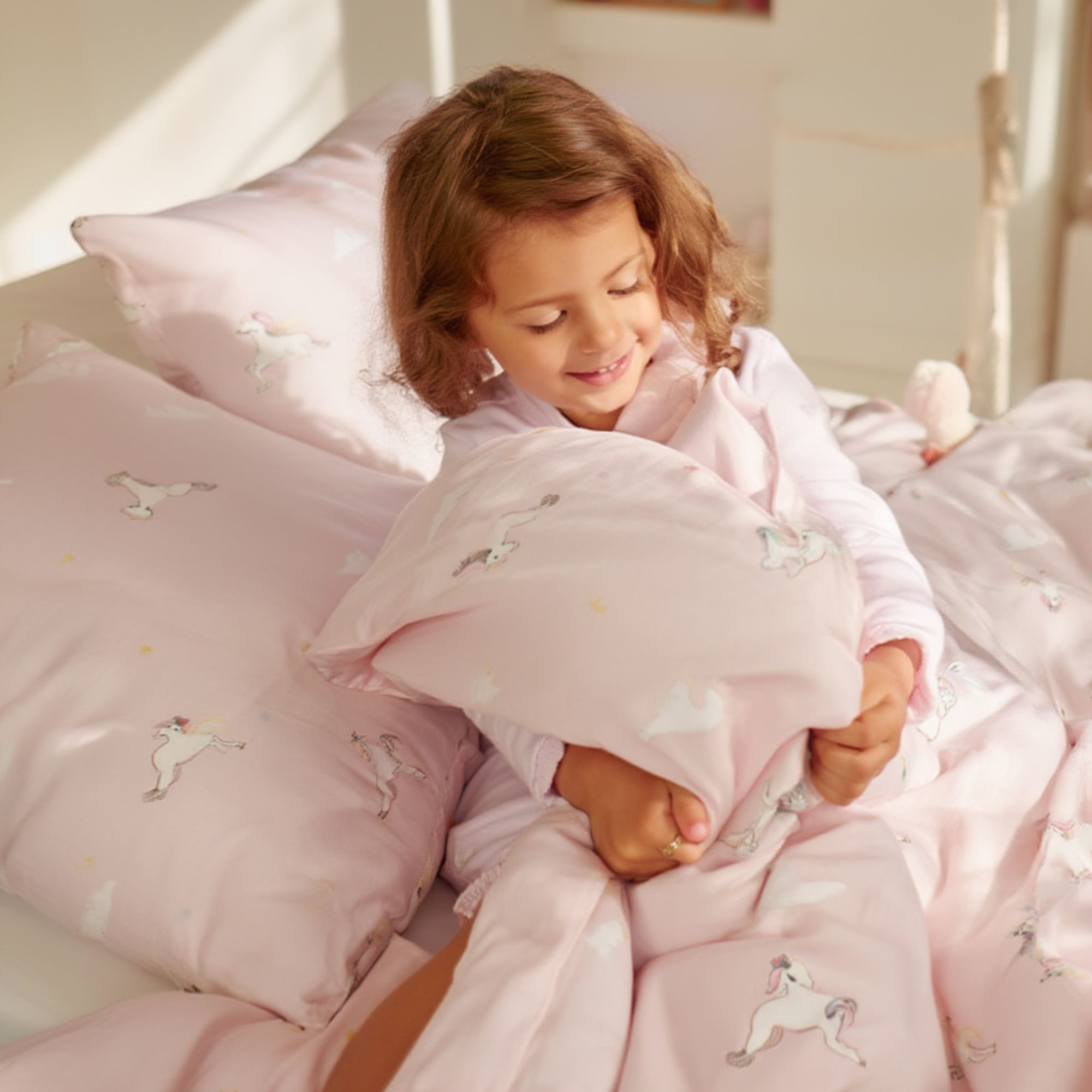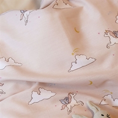 Skap en lys og rolig stemning på barnerommet med dette fine babysengetøyet fra By Mats i en lyserosa nyanse med små, dekorative enhjørninger og skyer. Det enkle og nordiske designet gir et mykt og harmonisk uttrykk, som passer vakkert inn i både moderne og klassiske innredninger.