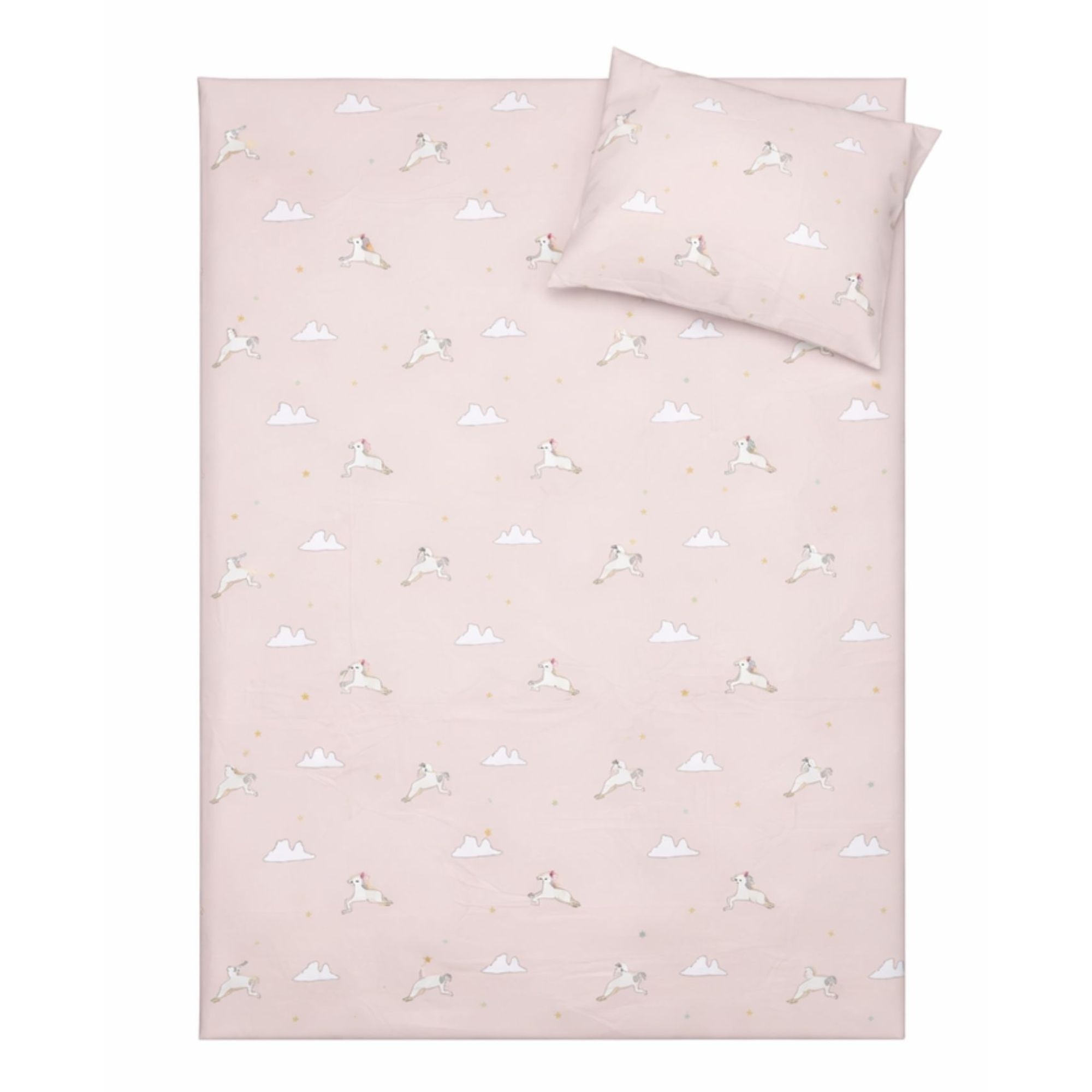 By Mats babysengetøy 70x100 cm - lyserosa med enhjørninger og skyer