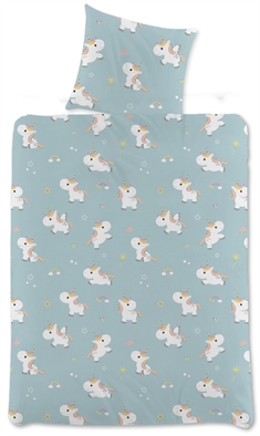Forside »Sengetøy » Sengetøy til barn » Junior sengetøy 100x140 cm Enhjørning sengetøy - 100x140 cm - Unicorn og regnbue junior sengetøy - 2 i 1 design - Sengesett i 100% bomull Spar50% Licens 499,00249,00NOKSpar 250,- På lager Trustpilot Antall Legg i kurv Se mer fra: Licens Artikkelnummer:11583-8 Les vår sengetøyguide Se vårt store utvalg av lagner Se vårt store utvalg av dyner 100x140 Har du spørsmål om produktet? Høy pusteevne100% myk bomullOEKO-TEX® sertifisert Dynetrekk: 100x140 cm - junior sengesett Putetrekk: 40x45 cm Materiale: 100% myk bomull Farge: Lyseblå Motiv: Enhjørning Design: Vendbar - Forside med store print av enhjørninger, bakside med mini print Lukking: Dyne med knapper, putetrekk med overlapp Vask: 60° Tørketrommel: Ja Tåler stryking: Ja Sertifisering: STANDARD 100 by OEKO-TEX® (M1YLGG4D8 AITEX). Din garanti for at produktet er fritt for helseskadelig kjemi. Junior sengetøy i 100% bomull, med et all-over print av enhjørninger. Produsert med lette og pustende bomullstråder som gir sengesettet en følelse av mykhet, som gjør at dynen føles behagelig for barnet å sove med. Balansen i naturlige egenskaper og komfort fra det myke materialet, kombinert med det koselige designet, gjør dette settet til en sikker favoritt hos barnet ditt. Søtt sengesett med enhjørninger. Sengetøyets design er et all-over print av enhjørninger i forskjellige størrelser på forside og bakside. Sengsettet er produsert i 100% bomull som gjør settet slitesterkt, behagelig og sikrer høy absorbering samt pusteevne. Den rene bomullskvaliteten gir et lekkert sengesett, som i tillegg er lett å vedlikeholde og skaper et deilig sovemiljø for barnet ditt. Bomullssengetøy kan vaskes ved 60° i vaskemaskin, noe som også bidrar til å opprettholde et høyt hygienisk nivå. Sengetøyet er i tillegg fremstilt med OEKO-TEX sertifisering, som er din garanti for at settet er fritt for skadelig kjemi. Gå på utkikk etter favorittene og mye mer, i vårt store utvalg av tilbehør til barneuniverset For barnet bør sengen være et trygt sted og alle elementene skal sammen skape myke og deilige omgivelser for barnet å finne ro i. Bruk derfor gjerne barnets interesser for å skape et trygt soverom for barnet. Hos oss kan du finne et stort utvalg av tilbehør til sengen og barnerommet, fra lagner til dyner, puter, sengetøy og mye mer, og masse produkter med alle barnas favoritter på. Alt sammen elementer som kan være med på å skape det rette sovemiljøet og rommet for barnet ditt. Her kan du finne deilige og myke kvalitetslagner Tilbake til Junior sengetøy 100x140 cm