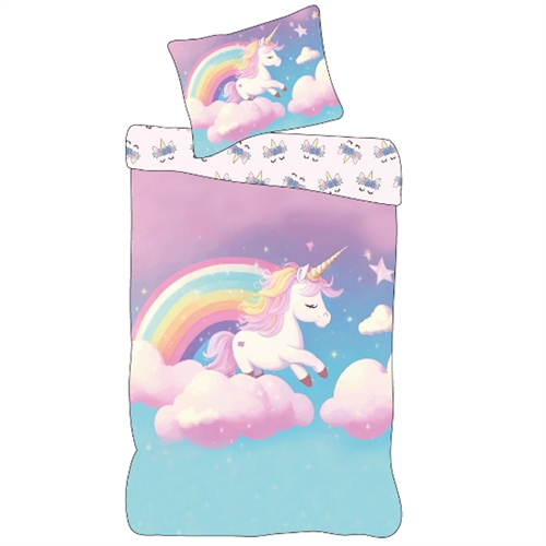 Forside »Sengetøy » Sengetøy til barn » Sengetøy til barn 140x200 cm Enhjørning sengetøy 140x200 cm - Vendbart sengesett med enhjørning og regnbue - 100% mykt bomulls sengetøy Spar30% Licens 499,00349,00NOKSpar 150,- På lager Trustpilot Antall Legg i kurv Se mer fra: Licens Artikkelnummer:2444-1 Les vår sengetøyguide Se vårt store utvalg av lagner Se vårt store utvalg av dyner 140x200 Har du spørsmål om produktet? Høy pusteevneMykt og deilig bomullOEKO-TEX® sertifisert Dynetrekk: 140x200 cm Putetrekk: 60x63 cm Materiale: 100% bomull Farge: Multi Vev: 220TC (Thread count = antall tråder per kvadrattomme) Mønster: Vendbart - Forside med en enhjørning på skyer med en regnbue, bakside med all-over print Lukking: Dyne med knapper og putetrekk med overlapp Vask: 60° Tørketrommel: Ja Tåler stryking: Ja Sertifisering: STANDARD 100 by OEKO-TEX® (17.HPK.23879 Hohenstein). Din garanti for at produktet er fritt for helseskadelig kjemi. Sengesett i 100% myk bomull, med en flott enhjørning. Produsert med lette og pustende bomullstråder som gir sengesettet en følelse av mykhet, som gjør at dynen føles behagelig for barnet å sove med. Et slitesterkt sengesett med høy pusteevne og absorberingsevne, som vil hjelpe med å gjøre leggetiden til en god opplevelse. Drøm deg bort til en magisk verden med dette fortryllende enhjørning sengetøyet. Sengsettet er perfekt for alle som elsker eventyr, regnbuer og litt magi ved leggetid. Sengsettet er vendbart. På forsiden sees en vakker enhjørning omgitt av skyer, stjerner og en glitrende regnbue. På baksiden er det et søtt all-over print med små enhjørningansikter. Det er alltid en god idé å bruke barnets interesser for å skape et tryggere og mer spennende sovemiljø for barnet. Sengsettet er produsert i 100% myk bomull som gjør settet slitesterkt og med høy pusteevne. Den rene bomullskvaliteten gir et deilig og mykt sengesett som bidrar til å fremme sovekomfort for barnet. Bomullssengetøy kan vaskes ved 60° i vaskemaskin, noe som også bidrar til å opprettholde et høyt hygienisk nivå. Sengetøyet er i tillegg OEKO-TEX sertifisert, som er din garanti for at settet er fritt for skadelig kjemi. Gå på jakt etter favorittene og mye mer i vårt store utvalg av tilbehør til barneuniverset For barnet bør sengen være et trygt sted og alle elementene skal sammen skape myke og fine omgivelser for barnet å finne ro i. Bruk derfor gjerne barnets interesser for å skape et trygt soverom for barnet. Hos oss kan du finne et stort utvalg av tilbehør til sengen og barnerommet, fra laken til dyner, puter, sengetøy og mye mer, og mange produkter med alle barnas favoritter på. Alt sammen elementer som kan bidra til å skape det rette sovemiljøet og rommet for ditt barn. Her kan du finne deilige og myke kvalitetslaken Tilbake til Sengetøy til barn 140x200 cm